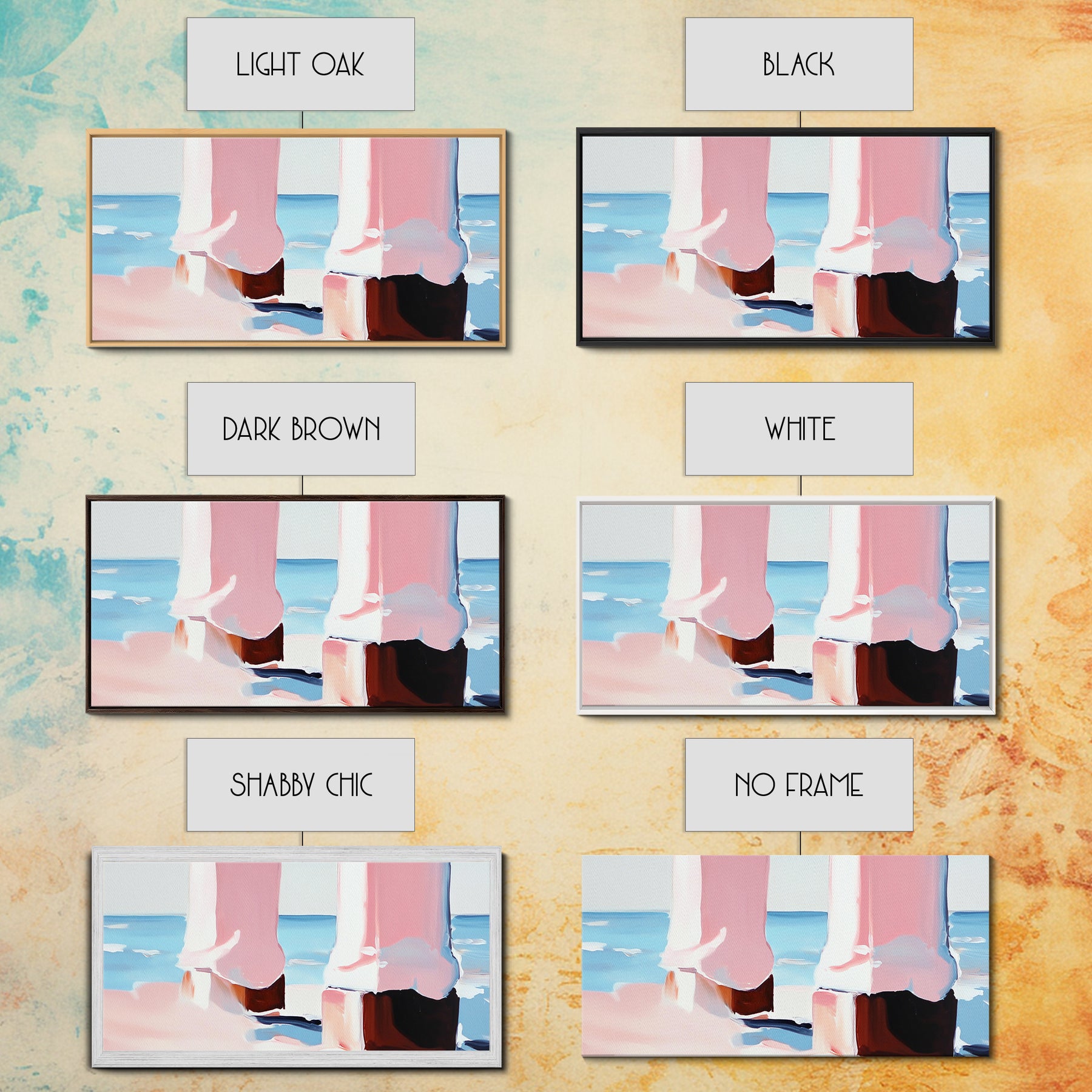 *Optional frames add a total of 1.5 inches to each dimension, for example a 10x20 canvas with a frame will be 11.5 by 21.5 inches total. All framed canvas are 1.5" total depth.