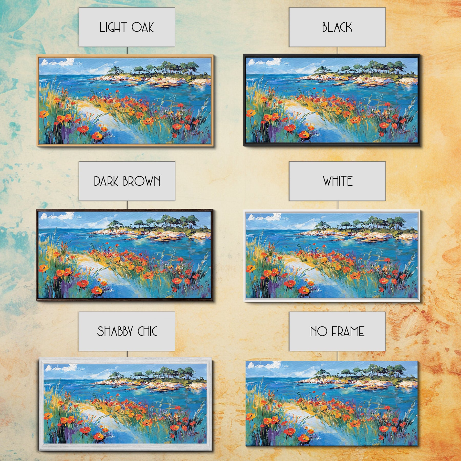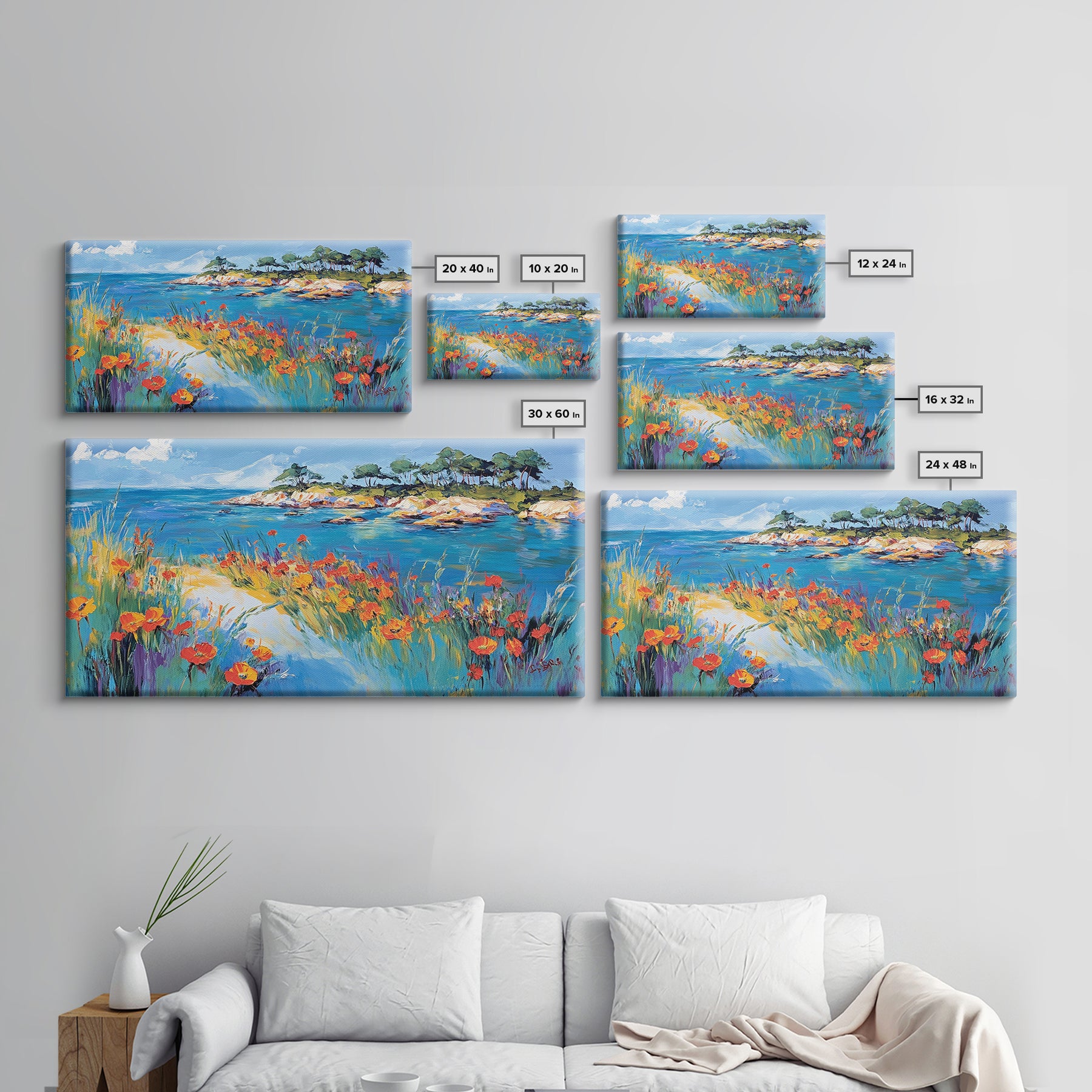 *Optional frames add a total of 1.5 inches to each dimension, for example a 10x20 canvas with a frame will be 11.5 by 21.5 inches total. All framed canvas are 1.5" total depth.