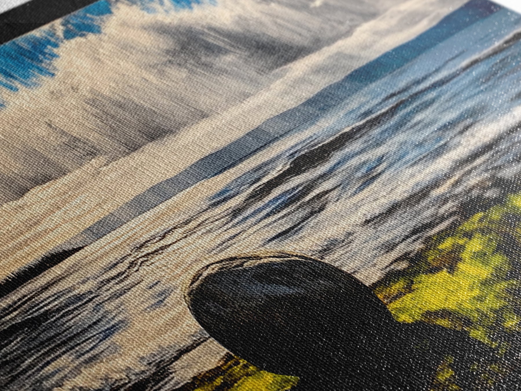 Most of our canvases are made in the USA, with the exception of canvases ordered with the light oak unstained frames, and any large canvases (24x48, 30x60, 16x48 and 20x60) ordered WITH a frame. These are temporarily made in and shipped from Europe, while we try to find a more consistent supplier in the USA.