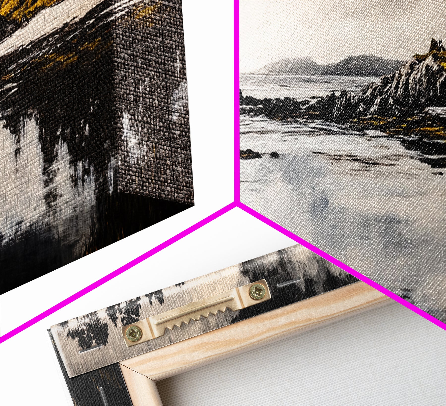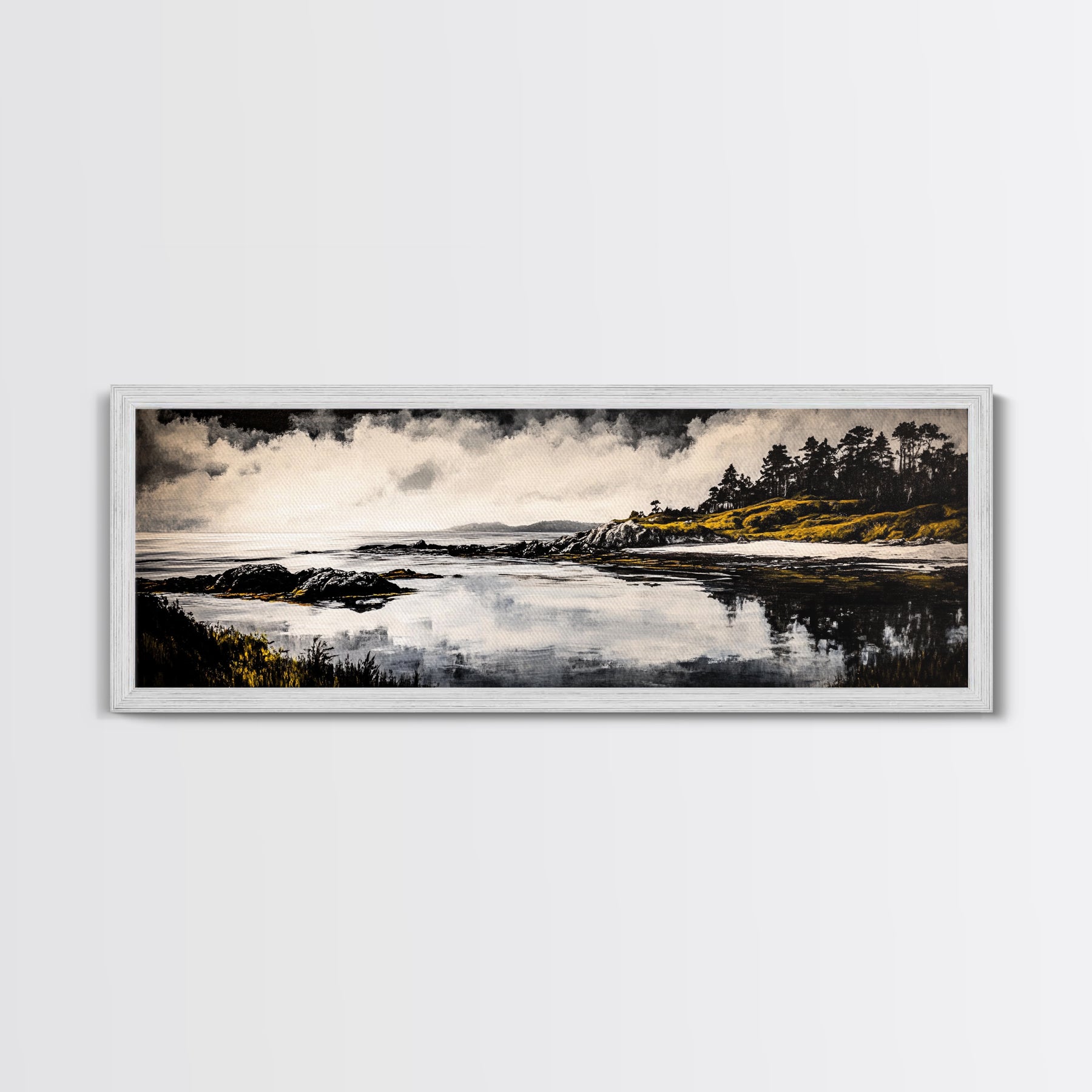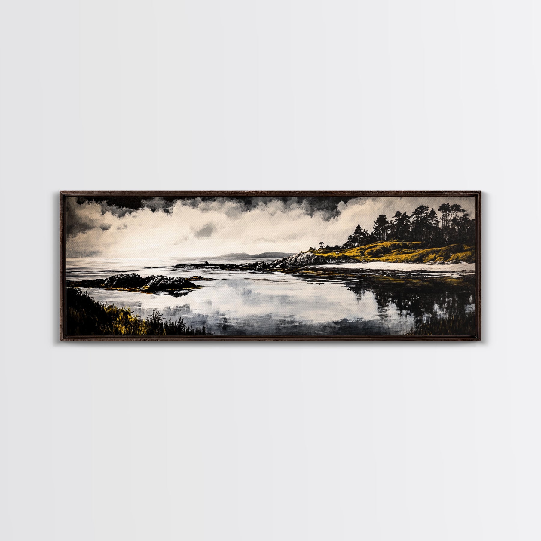 Coastal Reflection, Black White Art, Framed Canvas Print, Modern Landscape Art, Minimalist Decor, Large Wall Art, Bedroom Wall Art