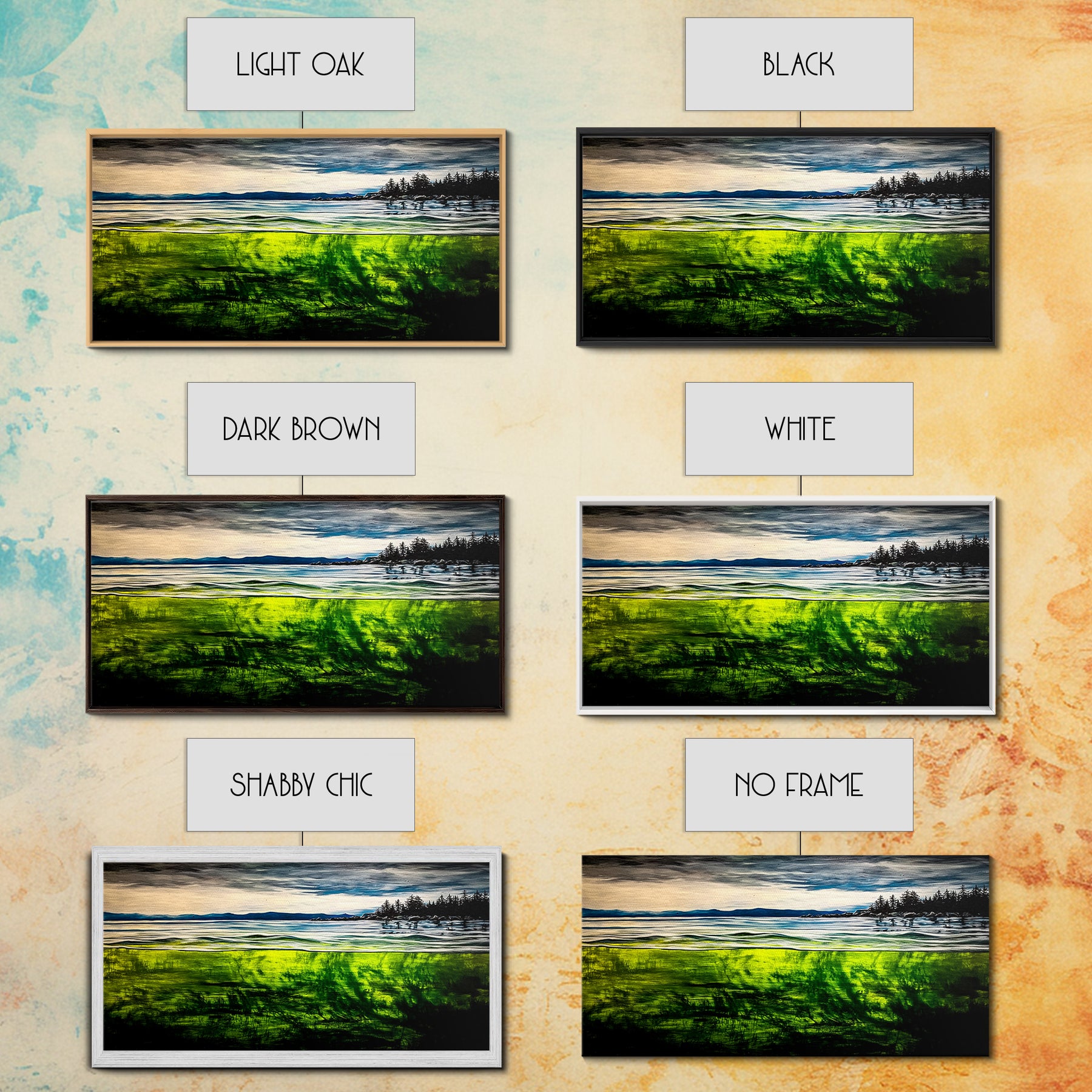 *Optional frames add a total of 1.5 inches to each dimension, for example a 10x20 canvas with a frame will be 11.5 by 21.5 inches total. All framed canvas are 1.5" total depth.