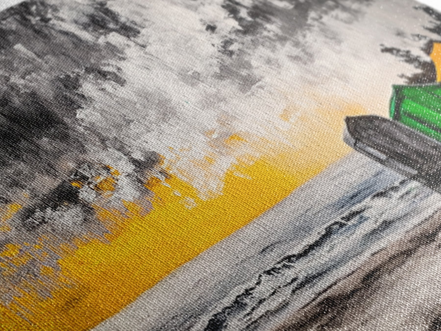 Most of our canvases are made in the USA, with the exception of canvases ordered with the light oak unstained frames, and any large canvases (24x48, 30x60, 16x48 and 20x60) ordered WITH a frame. These are temporarily made in and shipped from Europe, while we try to find a more consistent supplier in the USA.