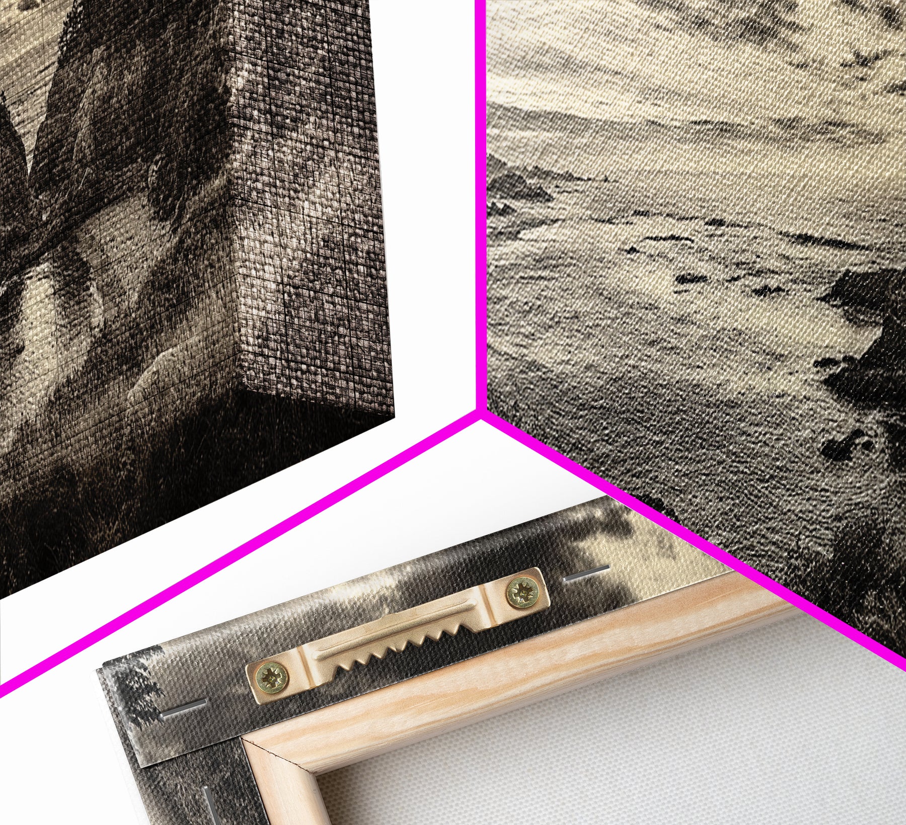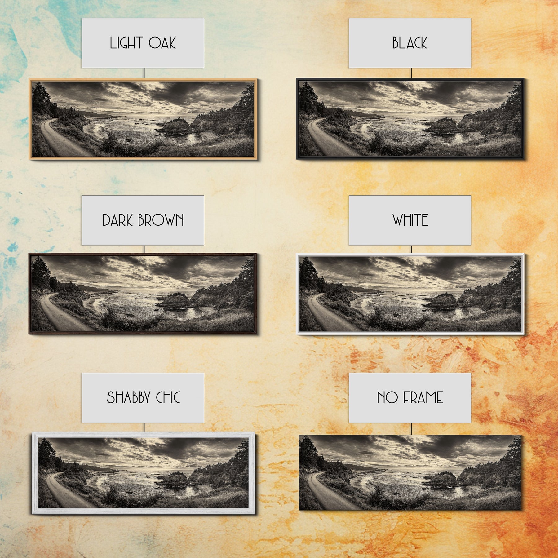 Coastal Road, Ocean Sunset, Rocky Shoreline, Framed Canvas Print, Moody Landscape Photography, Living Room Wall Art, Rustic Nature Decor