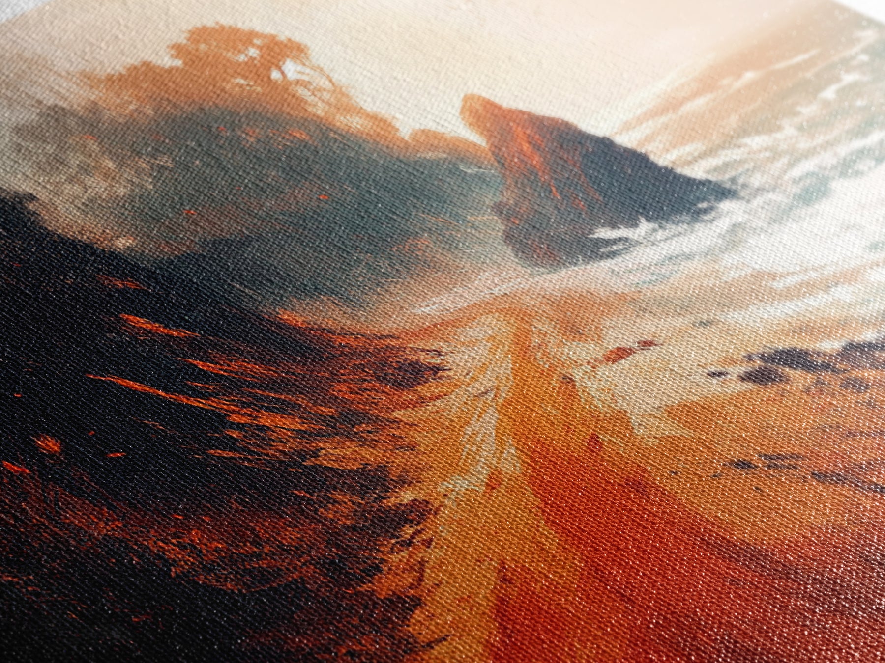 Most of our canvases are made in the USA, with the exception of canvases ordered with the light oak unstained frames, and any large canvases (24x48, 30x60, 16x48 and 20x60) ordered WITH a frame. These are temporarily made in and shipped from Europe, while we try to find a more consistent supplier in the USA.