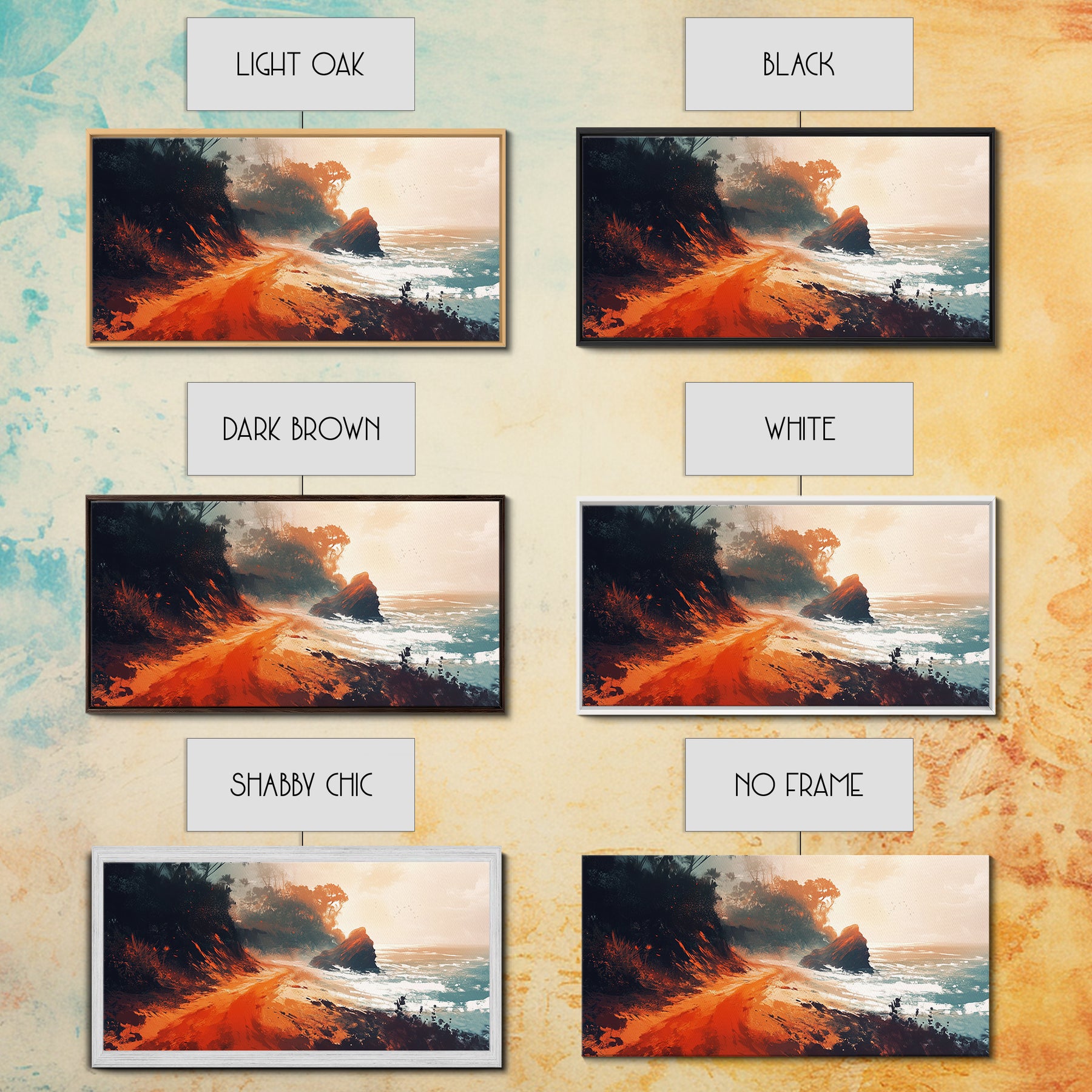 *Optional frames add a total of 1.5 inches to each dimension, for example a 10x20 canvas with a frame will be 11.5 by 21.5 inches total. All framed canvas are 1.5" total depth.