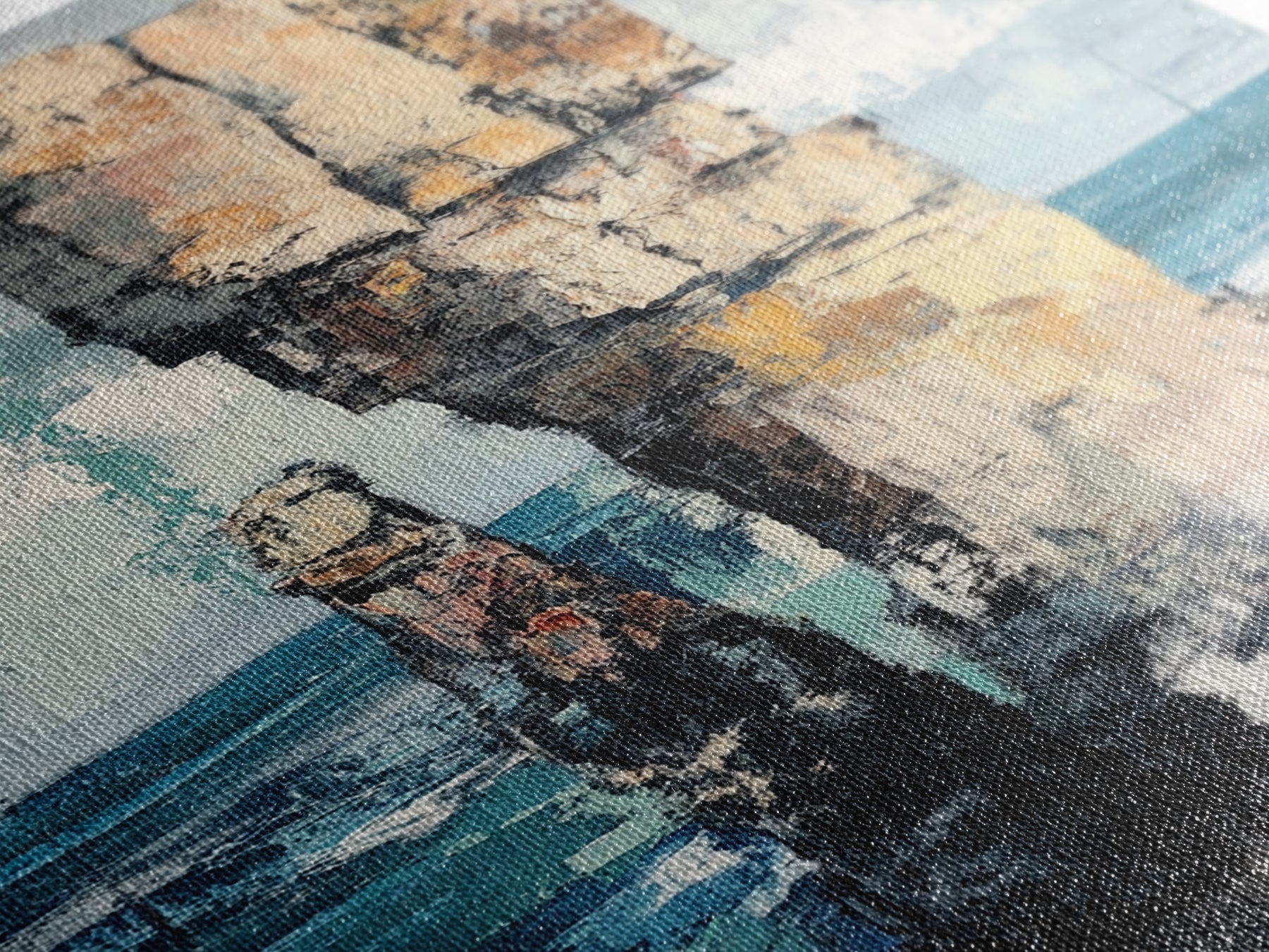 Most of our canvases are made in the USA, with the exception of canvases ordered with the light oak unstained frames, and any large canvases (24x48, 30x60, 16x48 and 20x60) ordered WITH a frame. These are temporarily made in and shipped from Europe, while we try to find a more consistent supplier in the USA.