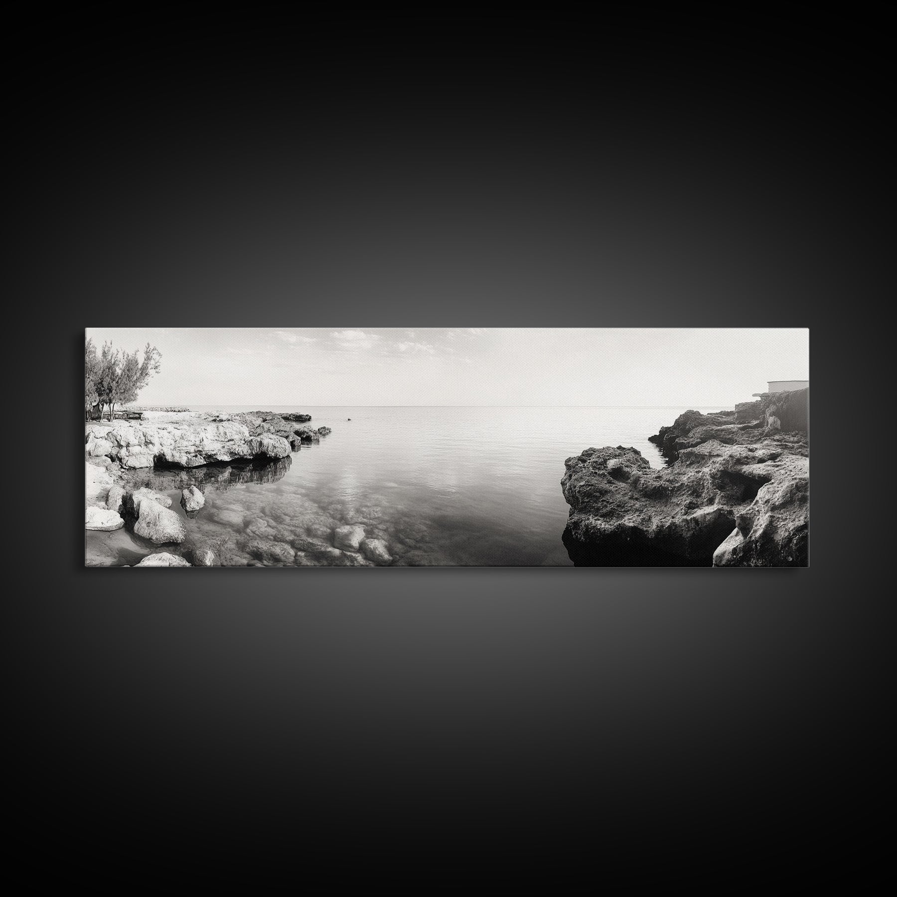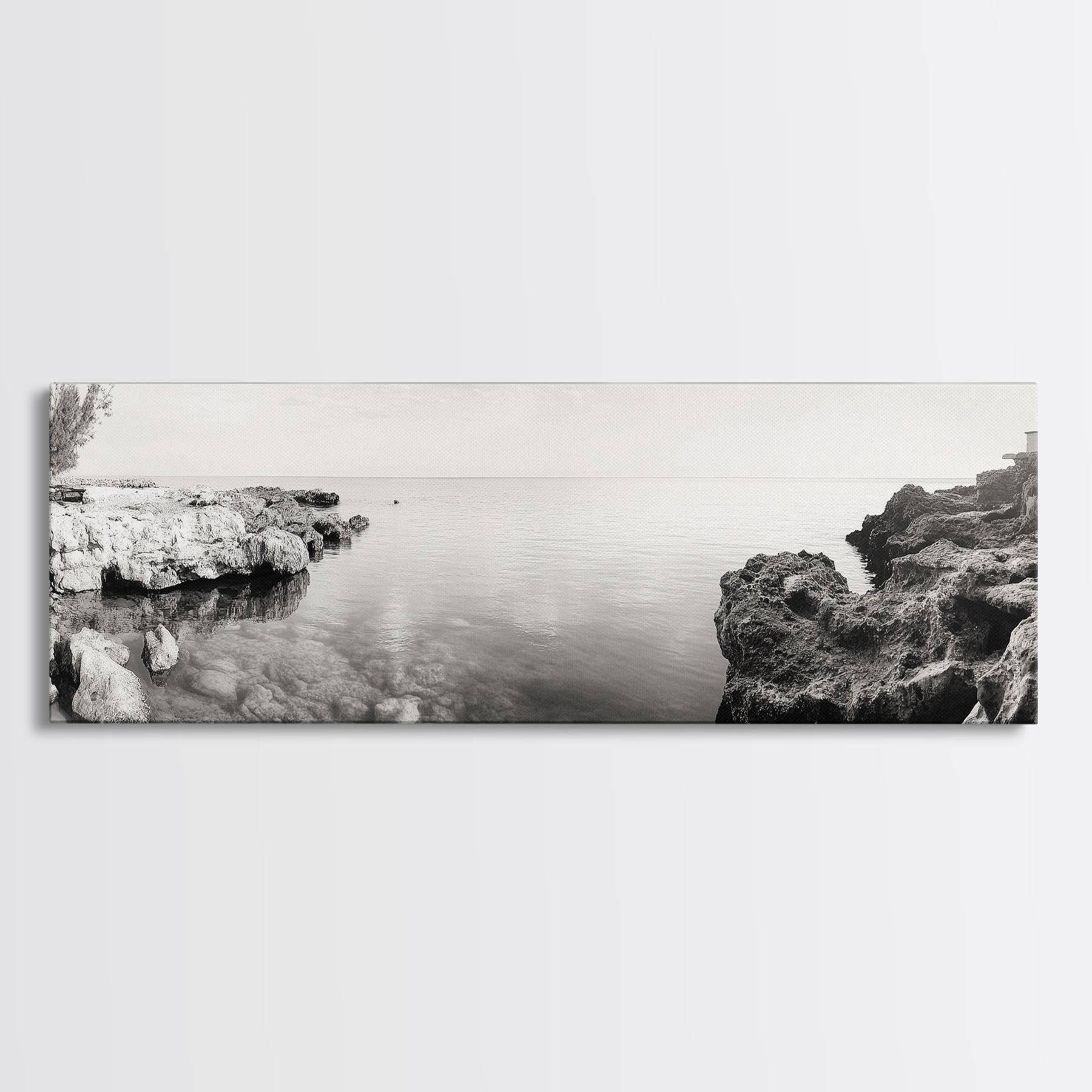 Coastal Rock Pool, Ocean Reflection, Natural Serenity, Peaceful Seascape, Framed Canvas Print, Zen Wall Art, Office Decor, Minimalist Look