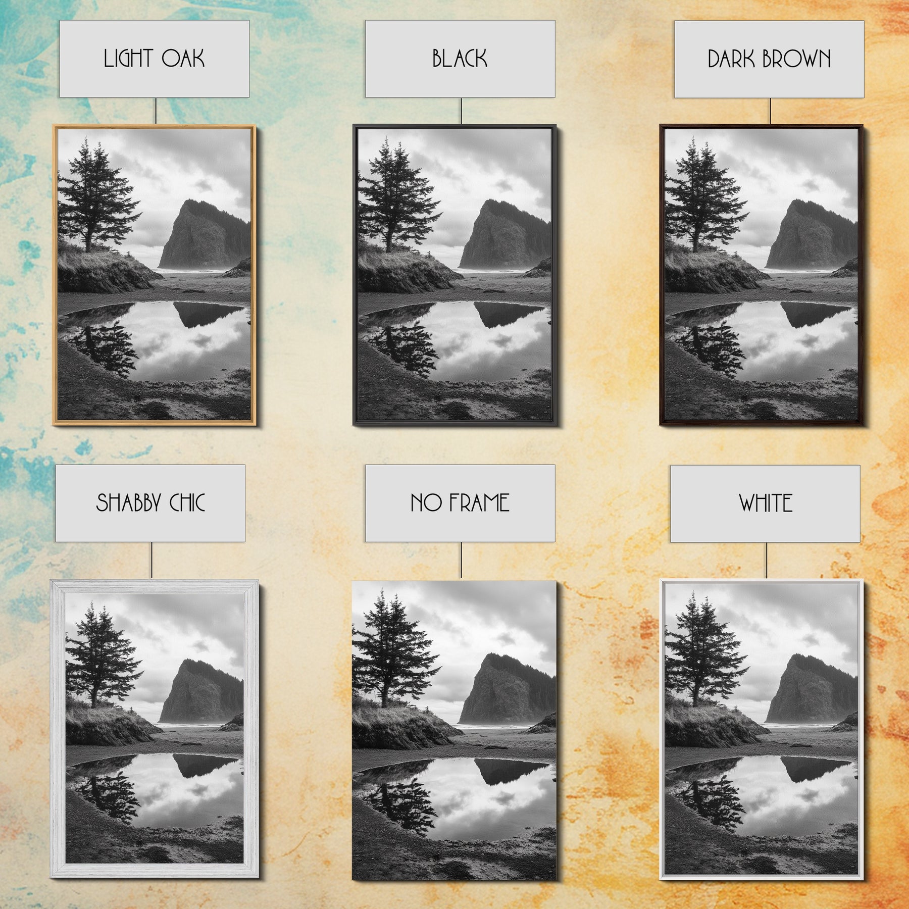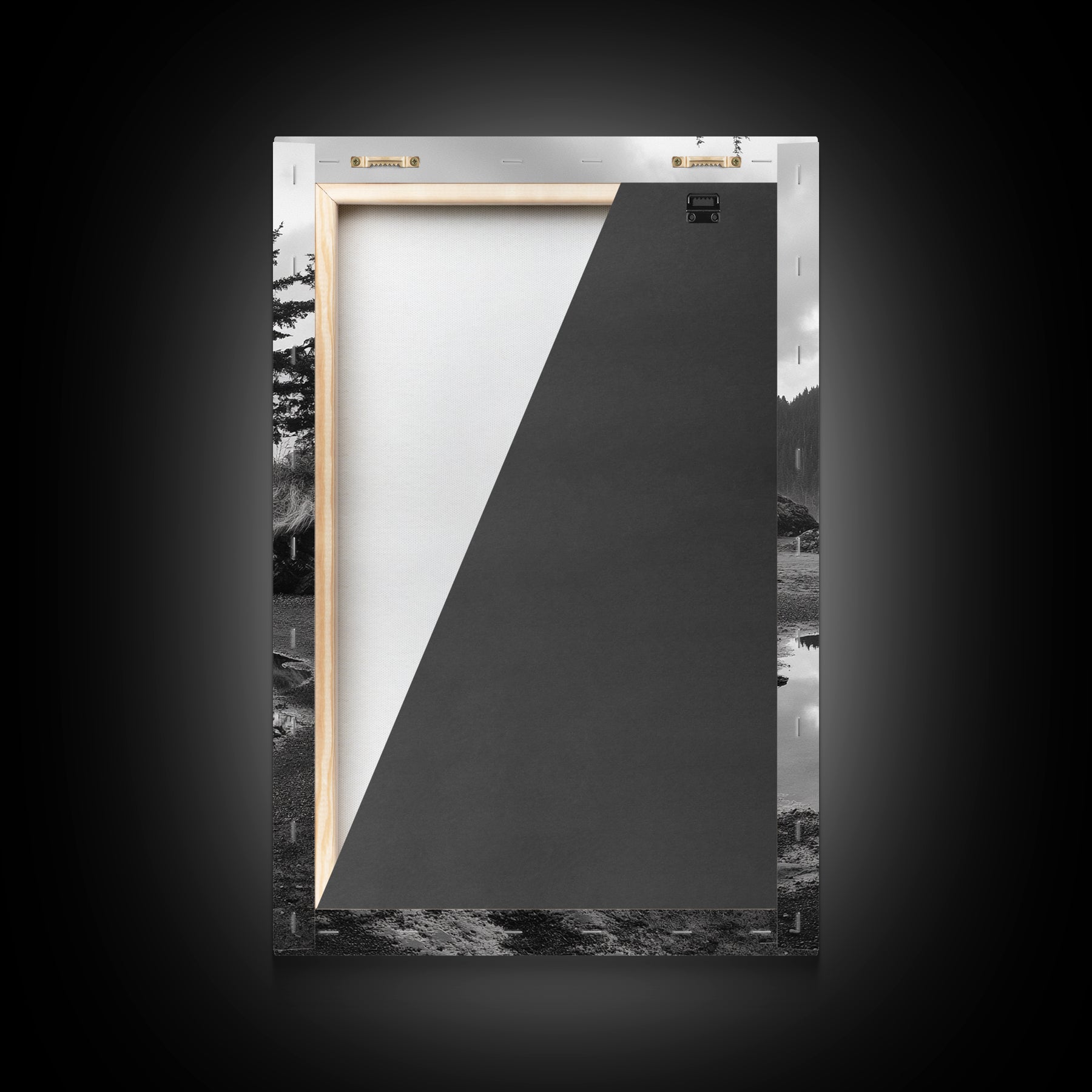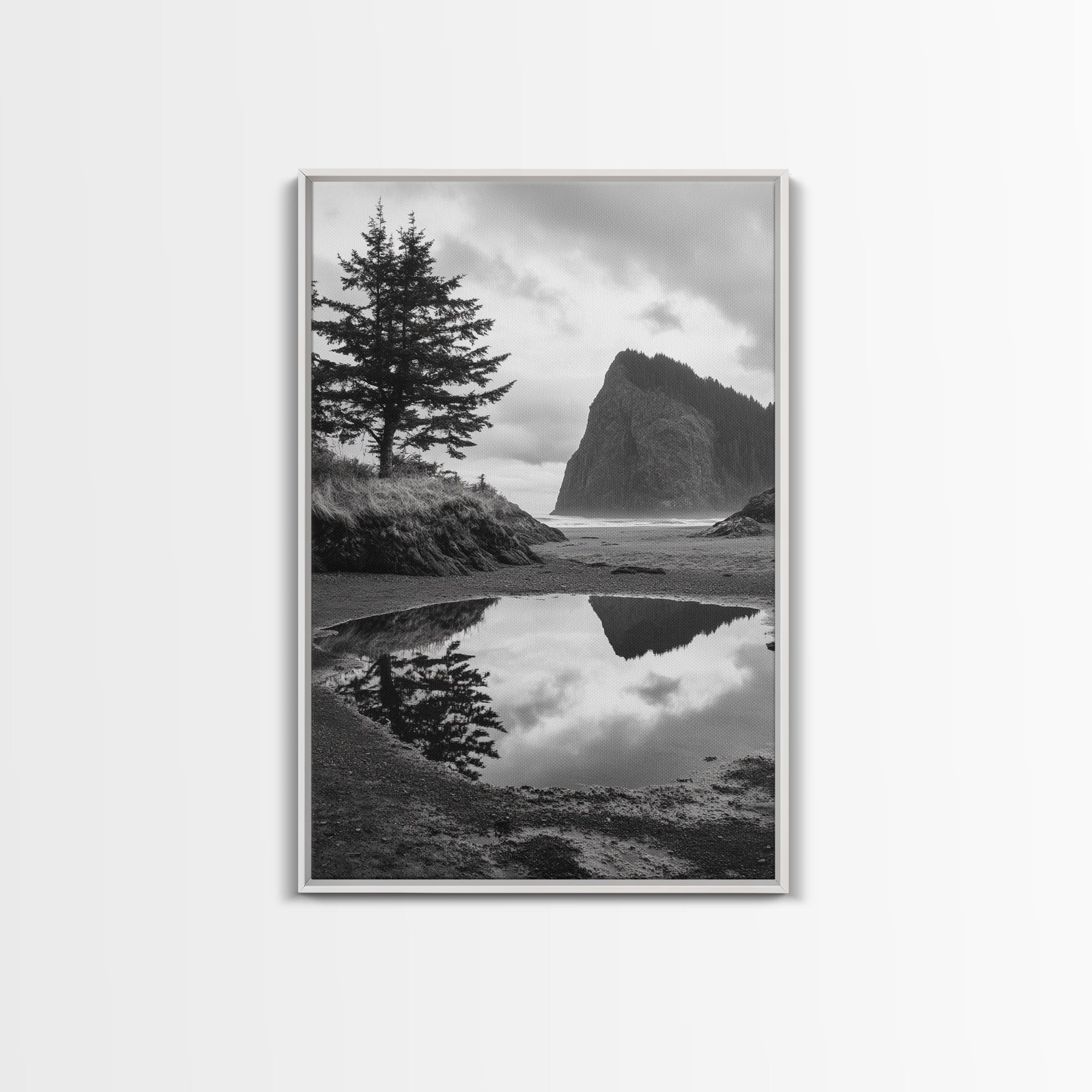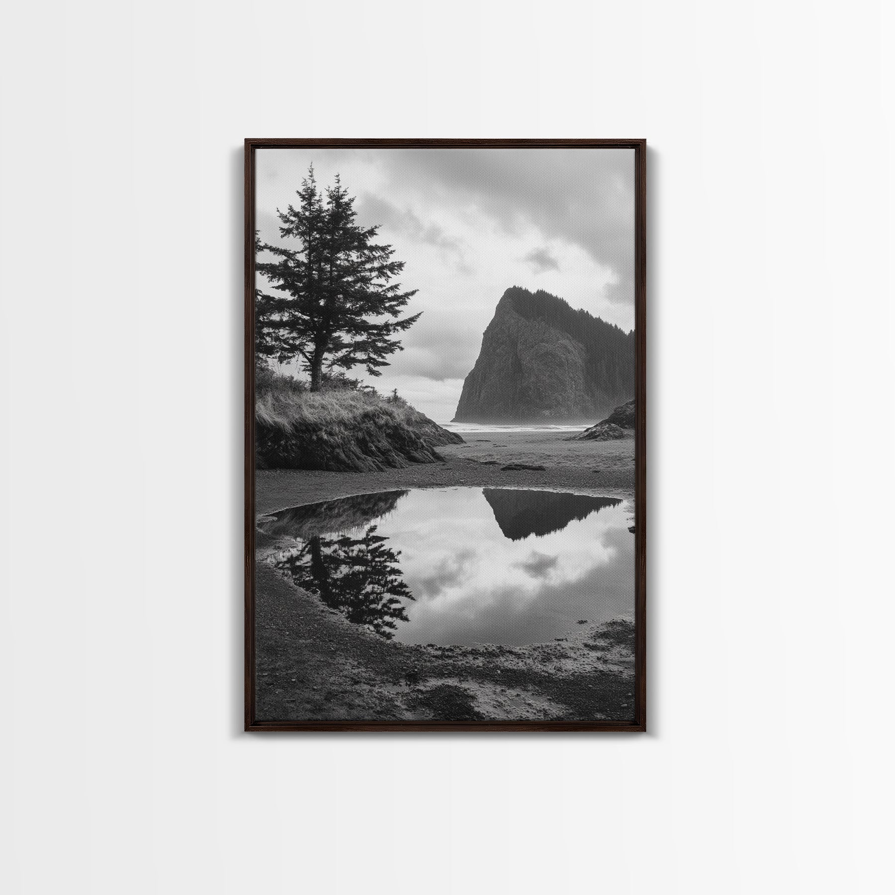 Coastal Rock Reflections, Nature Photography, Ocean Landscape, Framed Canvas Print, Moody Living Room Art, Minimal Decor