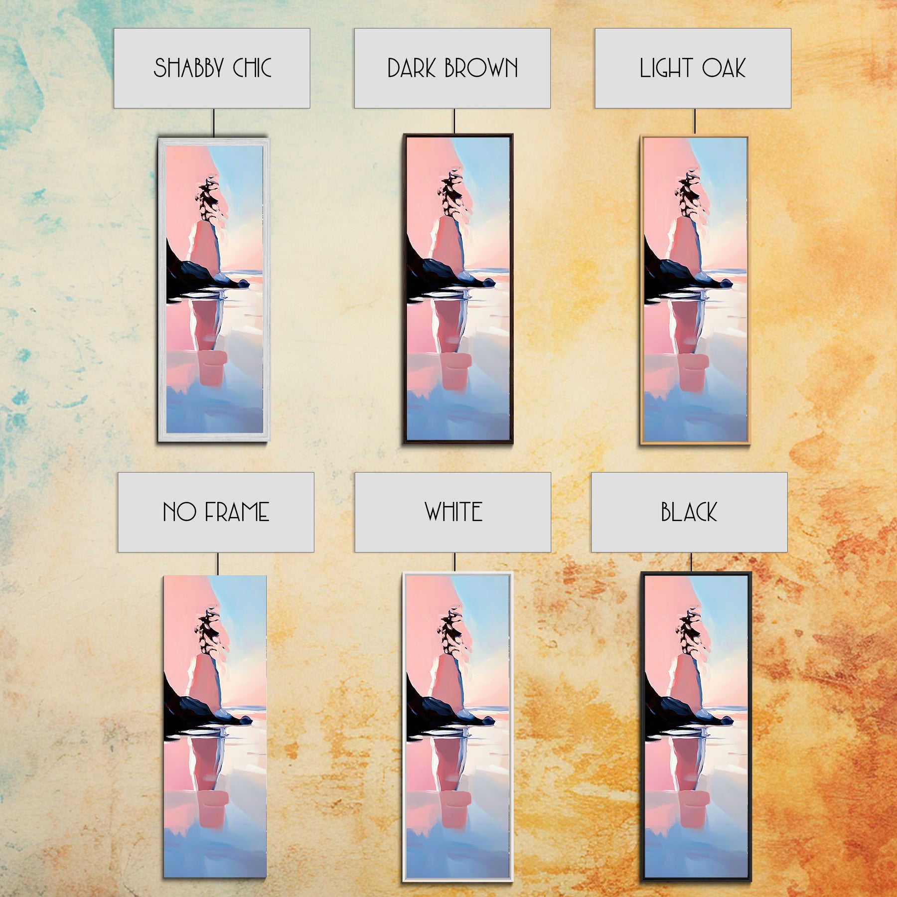 *Optional frames add a total of 1.5 inches to each dimension, for example a 10x20 canvas with a frame will be 11.5 by 21.5 inches total. All framed canvas are 1.5" total depth.