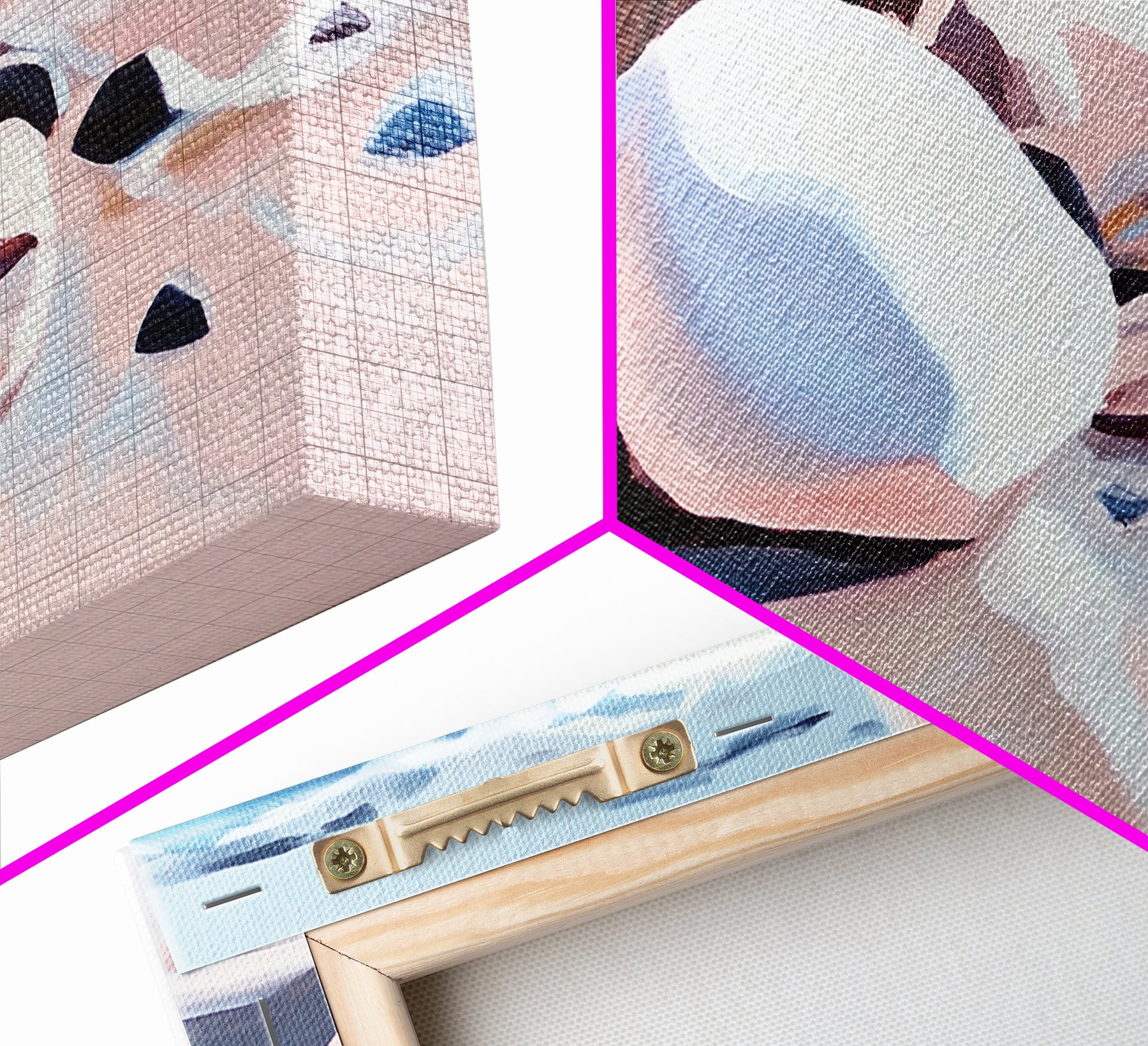 Hello and thank you for taking the time to view our modern high quality giclée artwork! We offer both posters and stretched canvas prints. Our posters are printed on Ultra Matte 60 lb / 230 GSM high quality photo paper, with a thickness of 10 mil. Our canvases are printed on museum grade 350 GSM canvas material with ECO friendly archival grade ink, then hand stretched and stapled over premium, FSC certified and shrink resistant frames. Designed and built to last a lifetime.