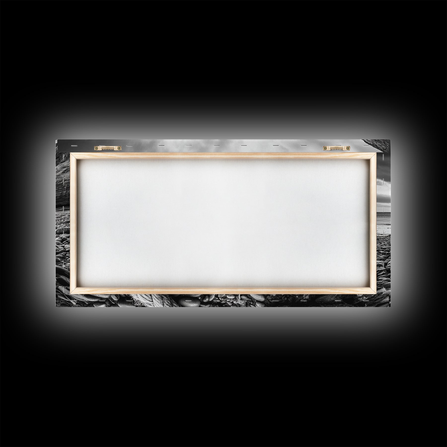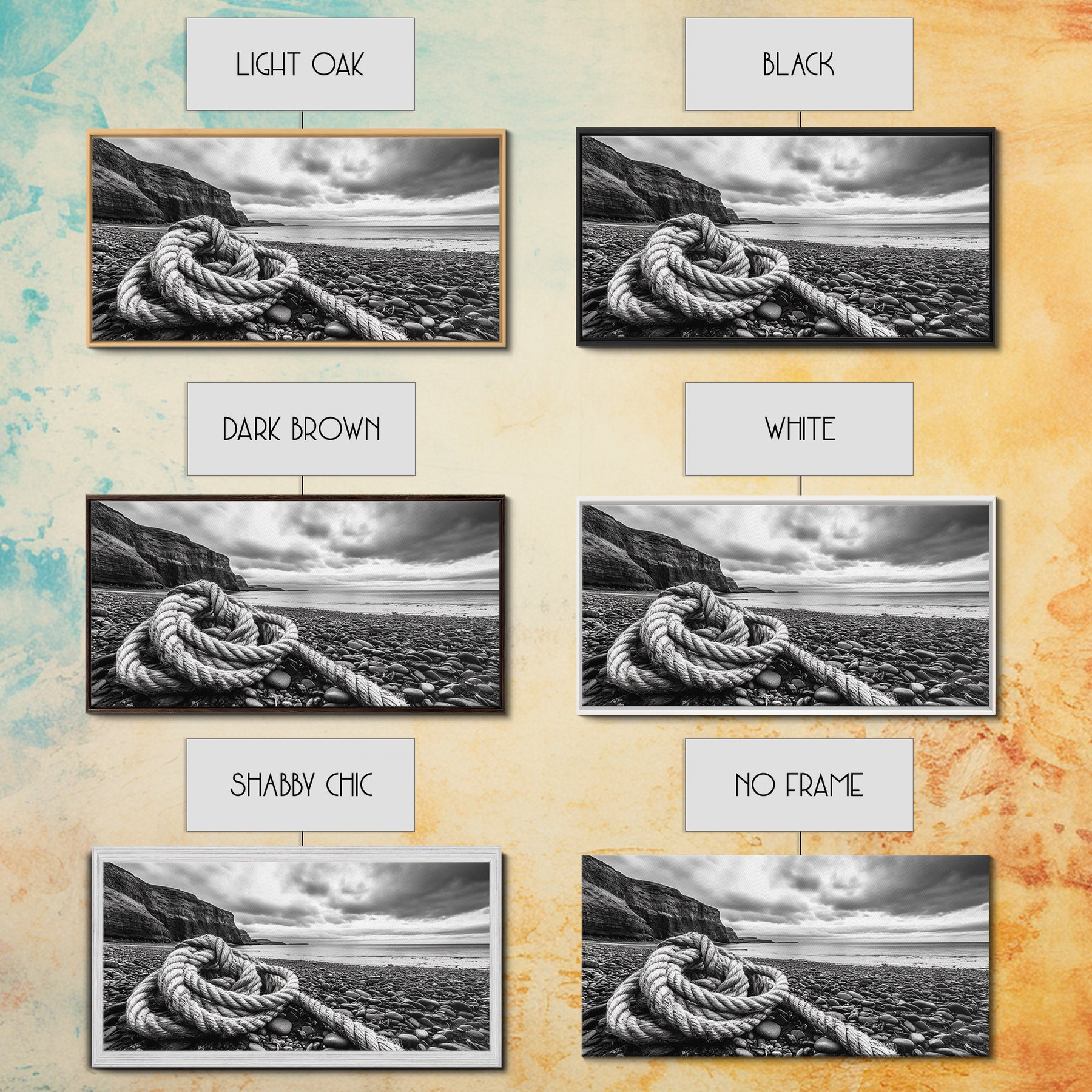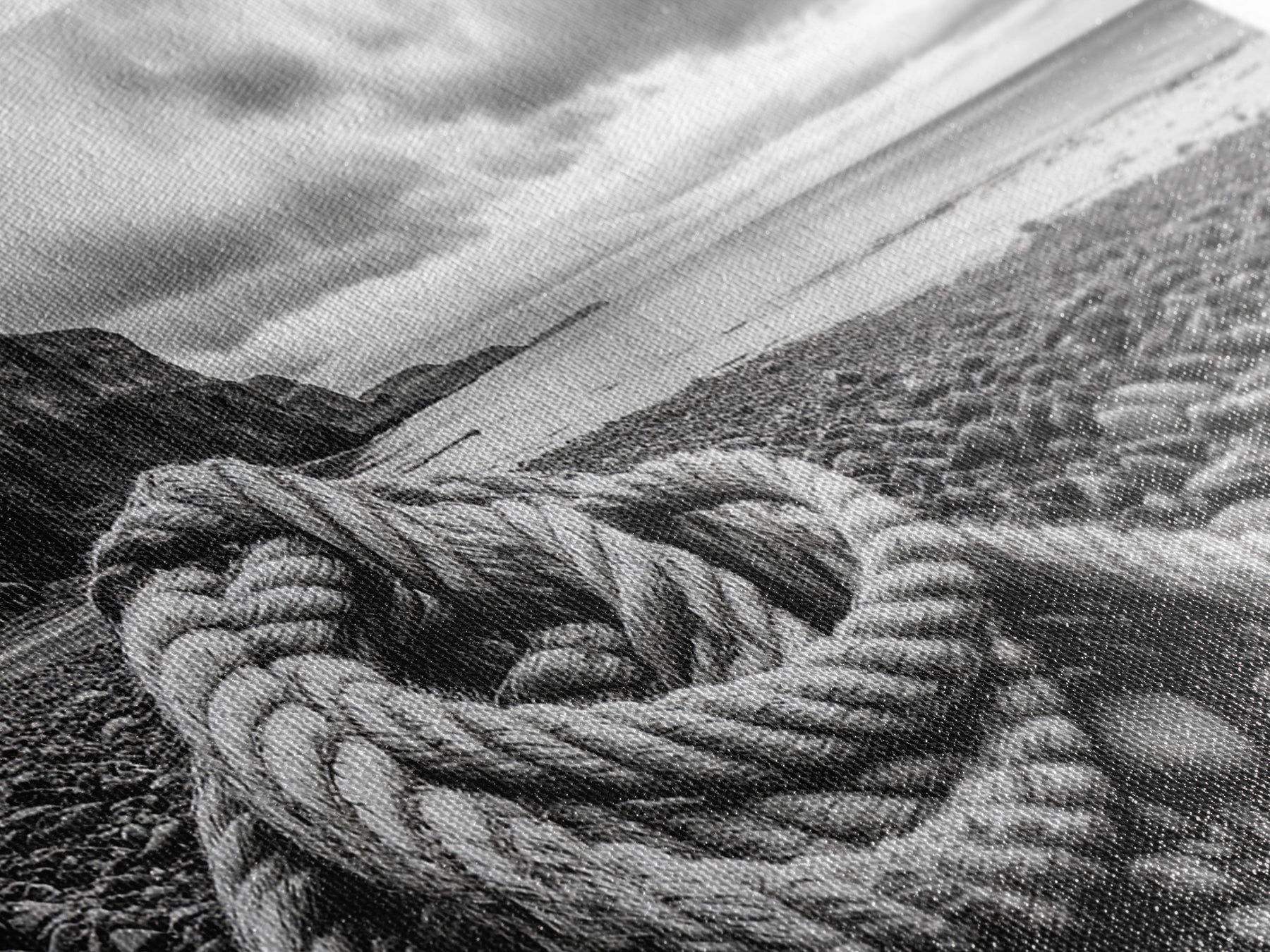 Coastal Rope, Pebble Shore, Nautical Texture, Rugged Seascape, Canvas Print, Bathroom Wall Art, Beach House Style, Moody Ocean Decor