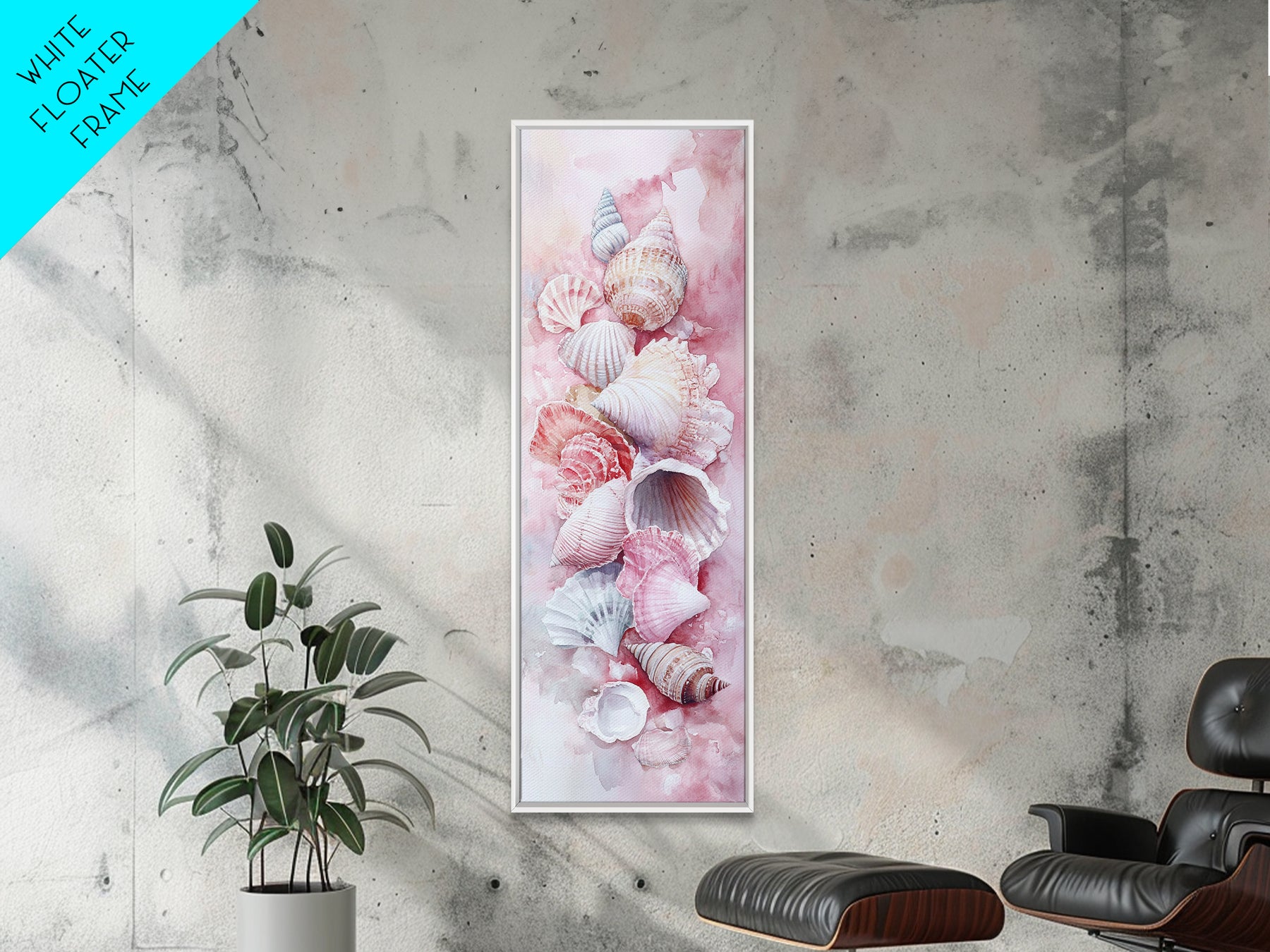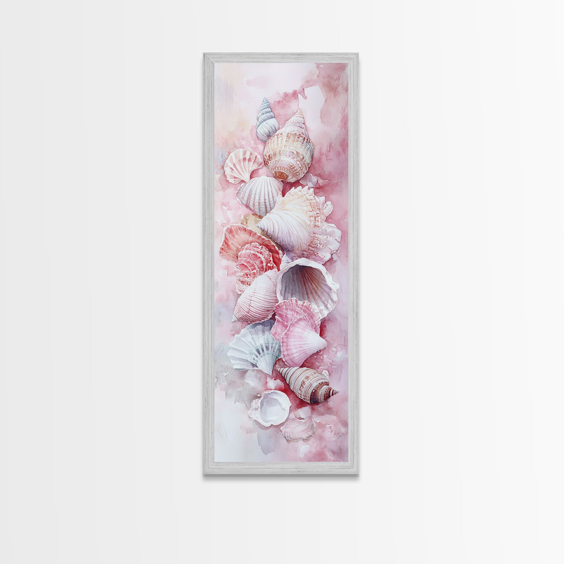 Coastal Seashell Painting Framed Canvas Print Featuring Nautical Decor Perfect Beach House Coastal Landscape Wall Art Theme
