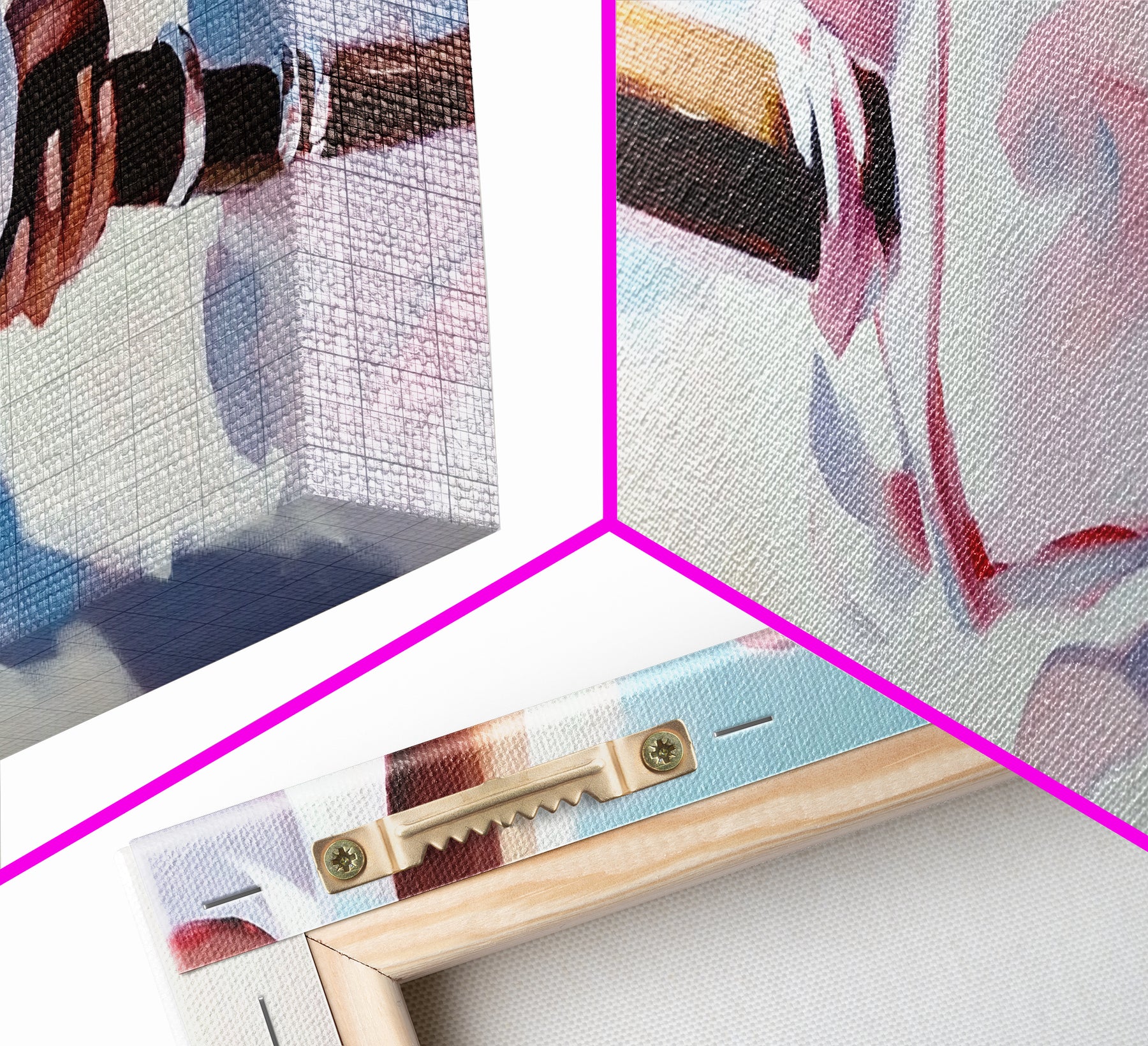 Hello and thank you for taking the time to view our modern high quality giclée artwork! We offer both posters and stretched canvas prints. Our posters are printed on Ultra Matte 60 lb / 230 GSM high quality photo paper, with a thickness of 10 mil. Our canvases are printed on museum grade 350 GSM canvas material with ECO friendly archival grade ink, then hand stretched and stapled over premium, FSC certified and shrink resistant frames. Designed and built to last a lifetime.