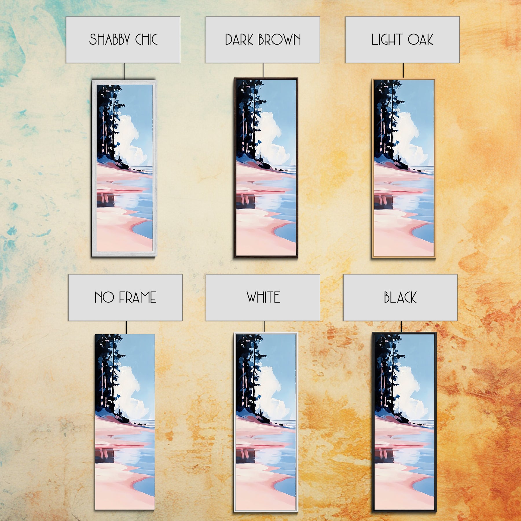 *Optional frames add a total of 1.5 inches to each dimension, for example a 10x20 canvas with a frame will be 11.5 by 21.5 inches total. All framed canvas are 1.5" total depth.