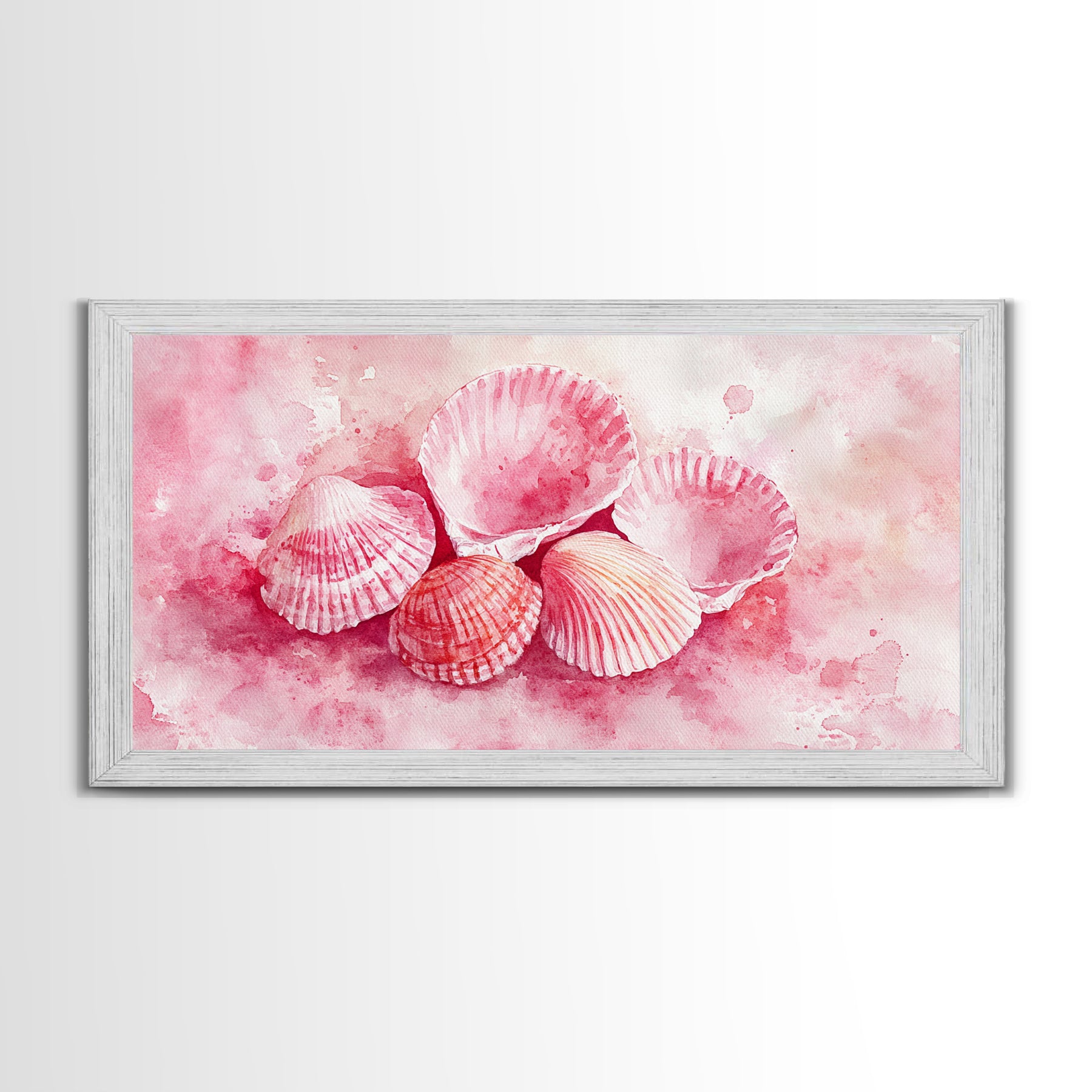 Coastal Shell Canvas Print | Pink Coastal Cowgirl Wall Art | Nautical Inspired Decor | Beach Themed Framed Artwork | Living Room Art