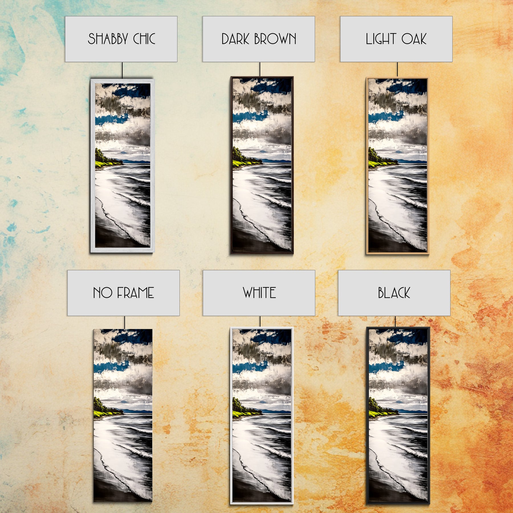 *Optional frames add a total of 1.5 inches to each dimension, for example a 10x20 canvas with a frame will be 11.5 by 21.5 inches total. All framed canvas are 1.5" total depth.