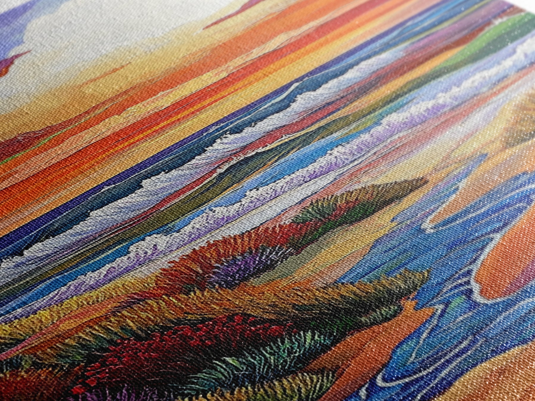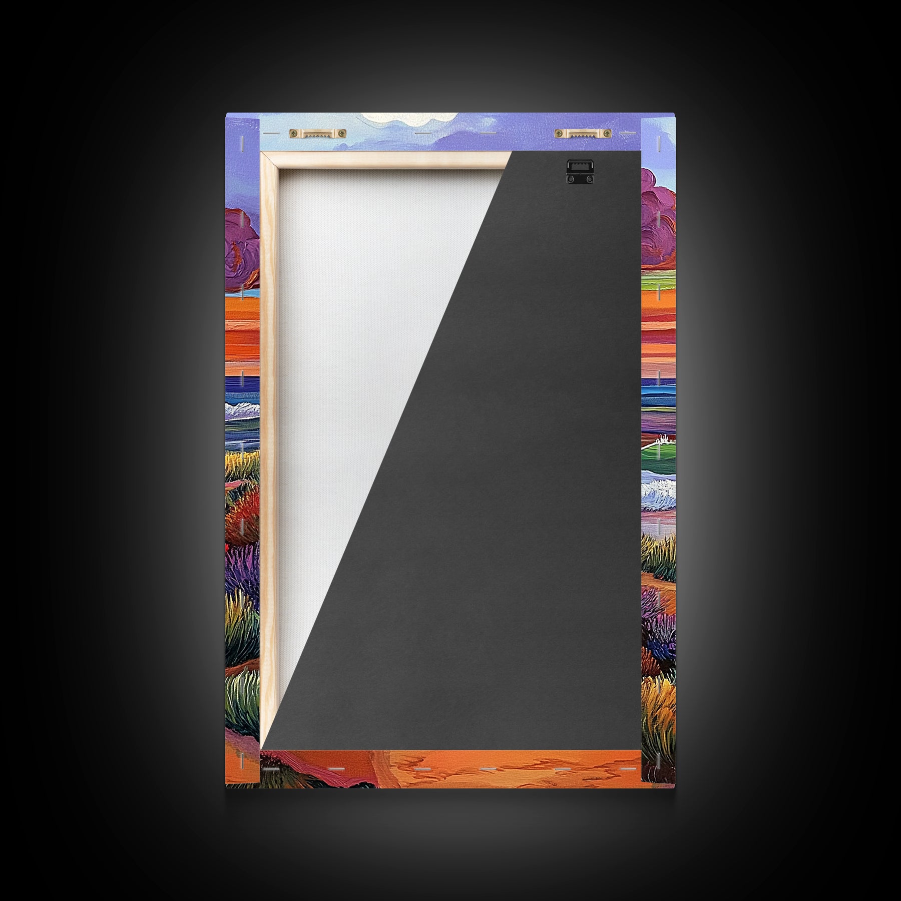 Coastal Sunset, Rolling Waves, Vibrant Beachscape, Boho Ocean Scene, Living Room Wall Art, Seaside Decor, Framed Canvas Print