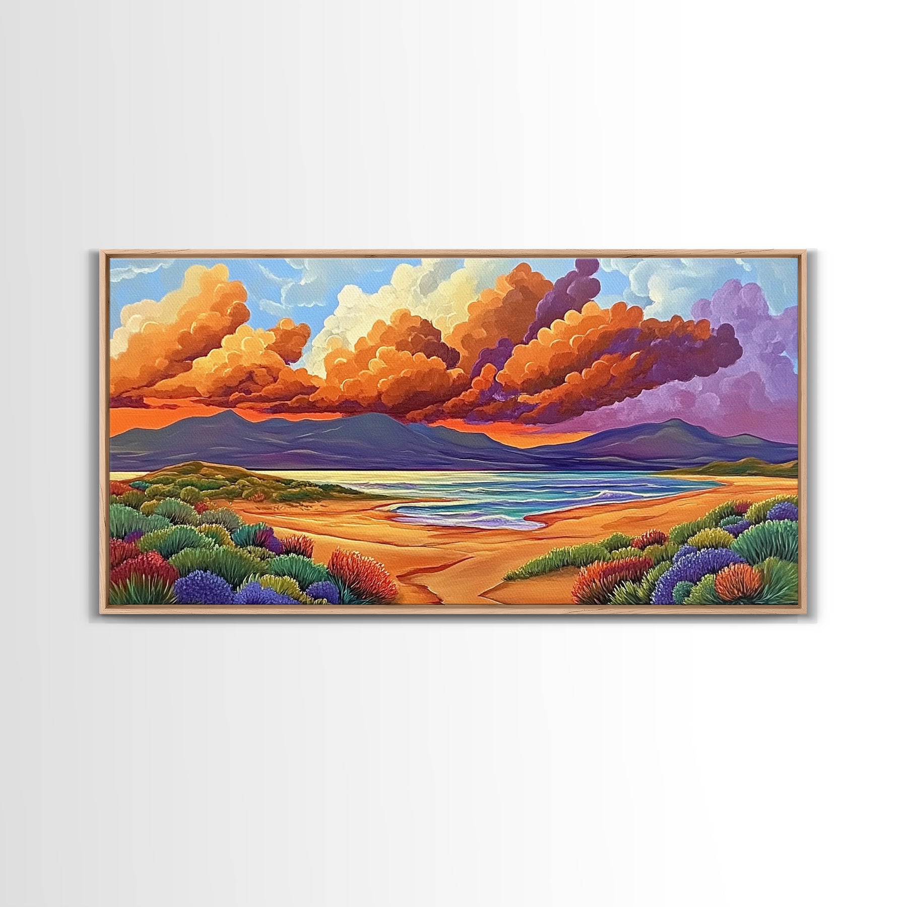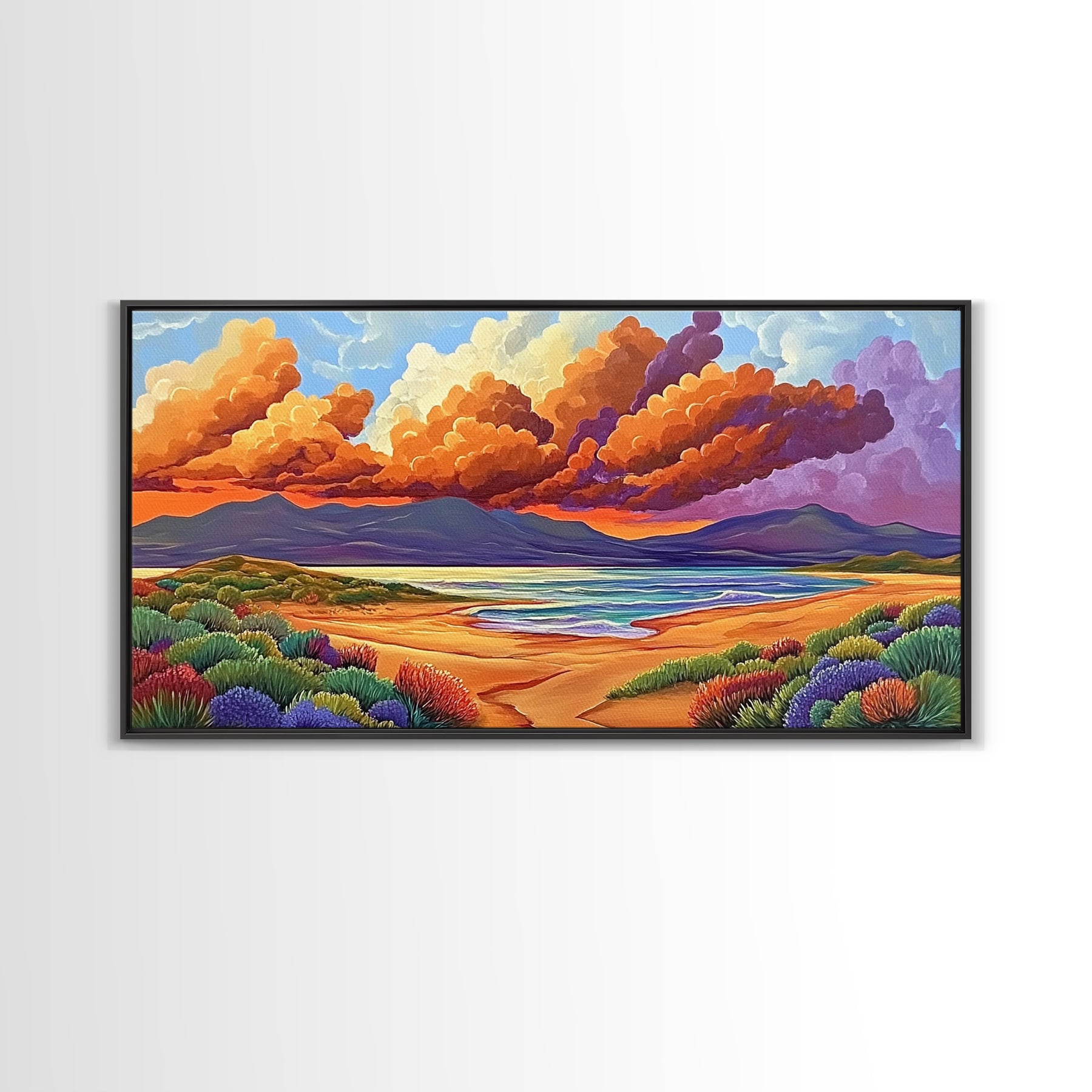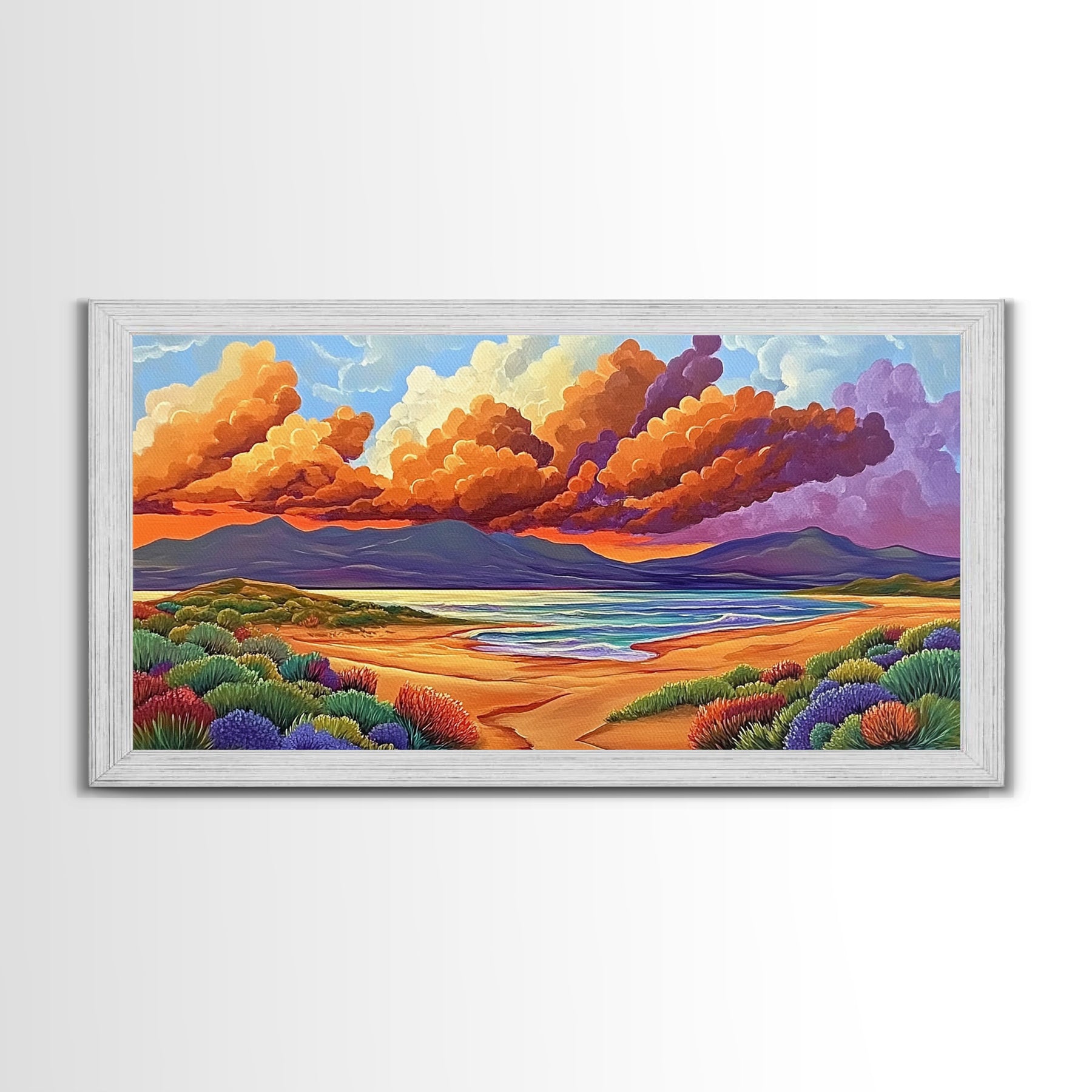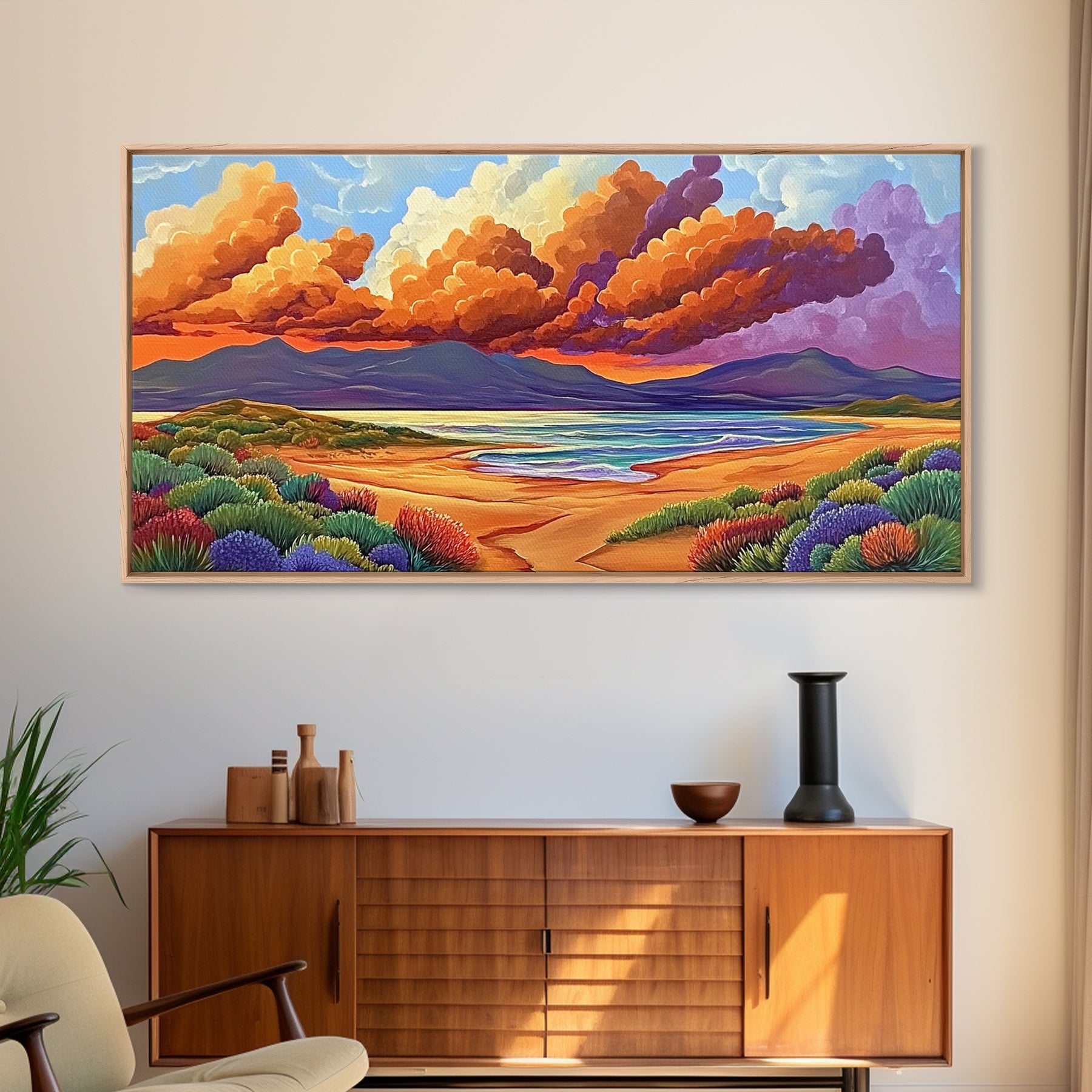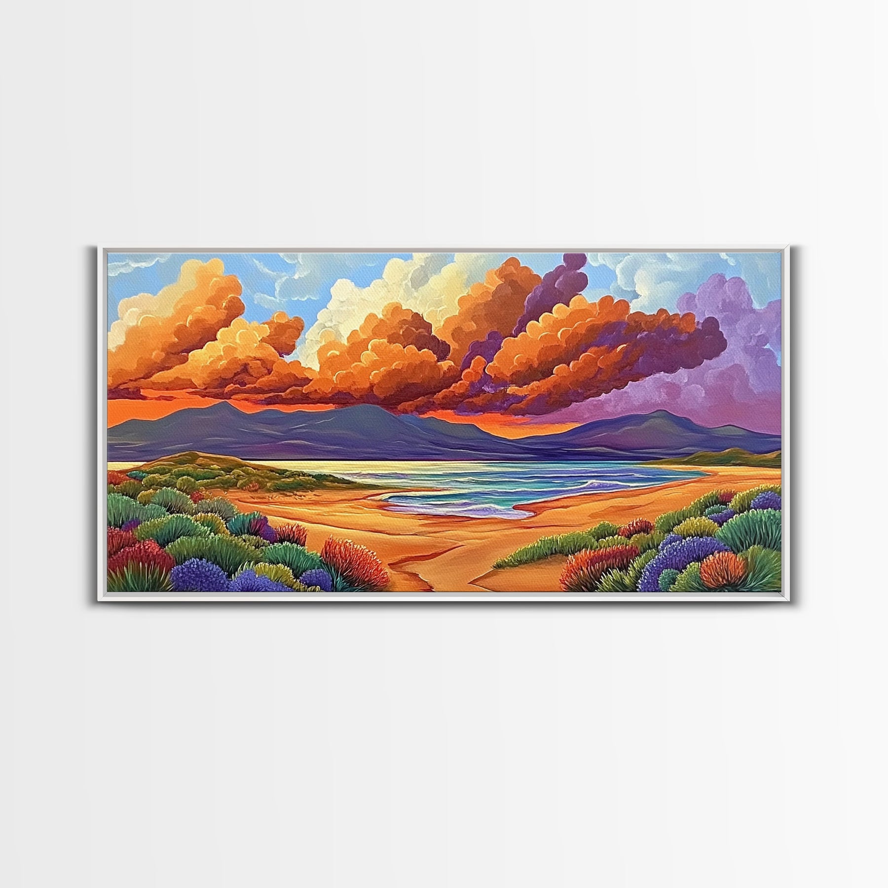 Coastal Sunset, Sandy Dunes, Ocean View, Canvas Print, Beach sunset artwork perfect Bathroom Wall Art or Tranquil Bedroom Decor