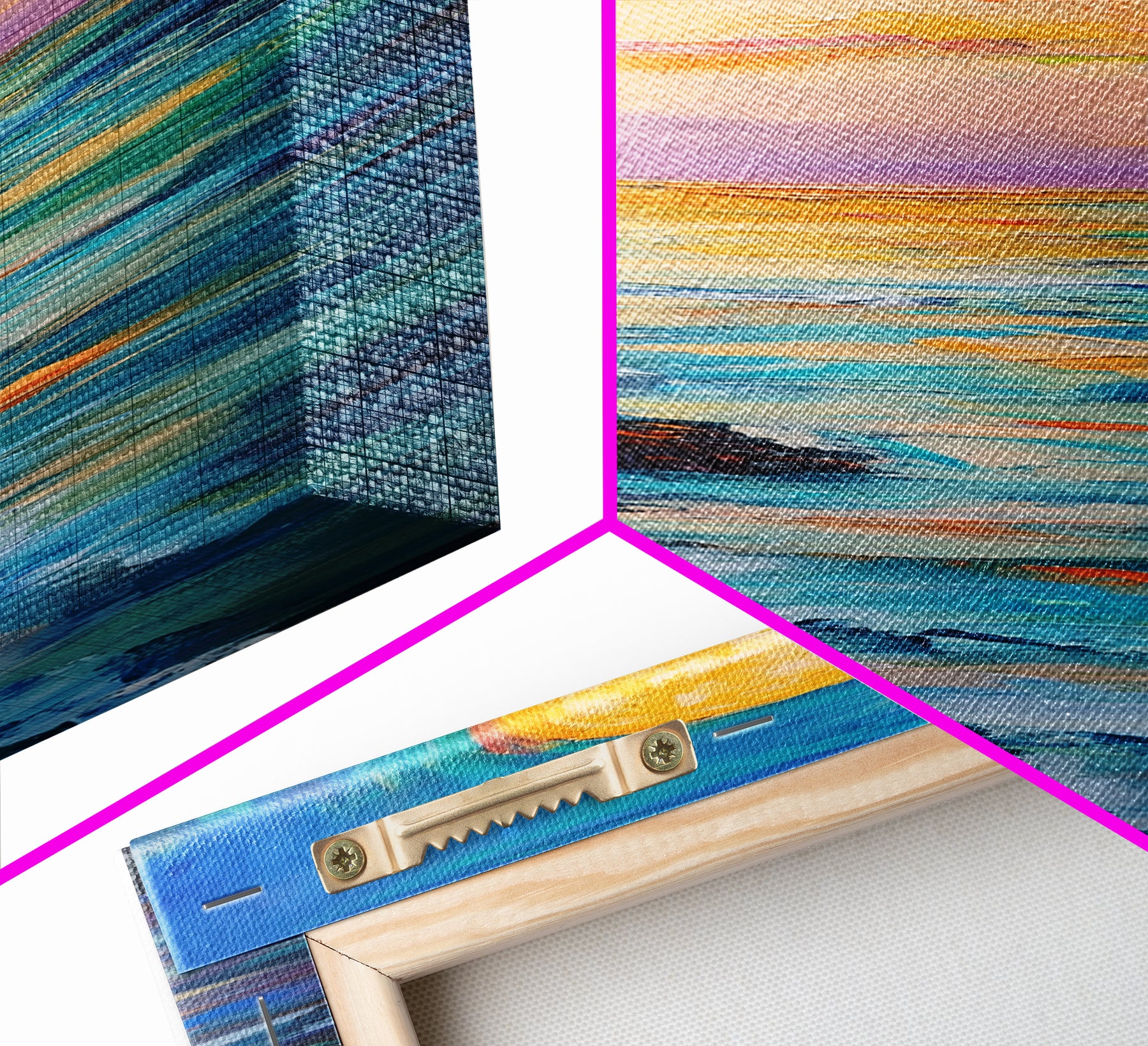 Hello and thank you for taking the time to view our modern high quality giclée artwork! We offer both posters and stretched canvas prints. Our posters are printed on Ultra Matte 60 lb / 230 GSM high quality photo paper, with a thickness of 10 mil. Our canvases are printed on museum grade 350 GSM canvas material with ECO friendly archival grade ink, then hand stretched and stapled over premium, FSC certified and shrink resistant frames. Designed and built to last a lifetime.