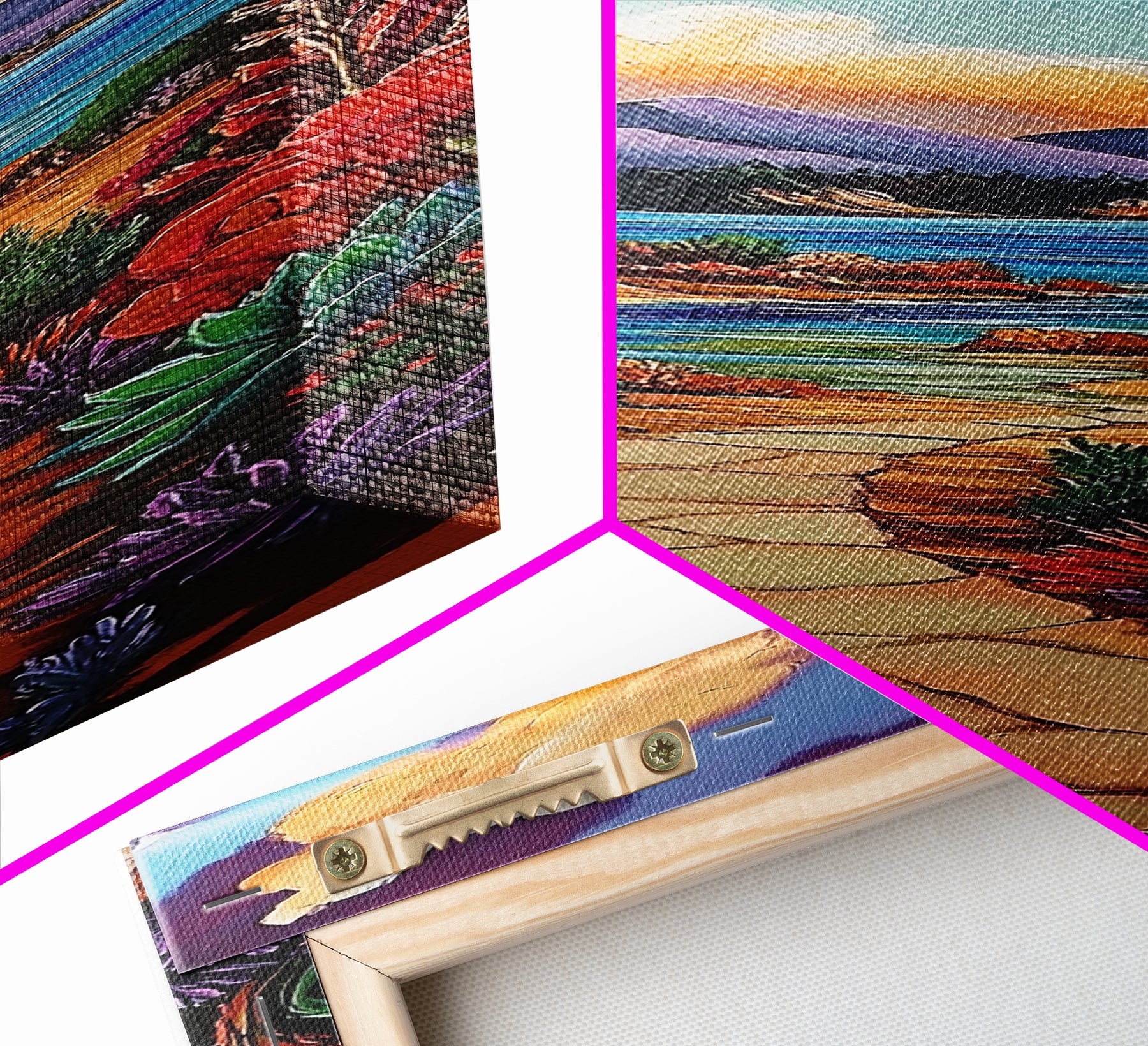 *Optional frames add a total of 1.5 inches to each dimension, for example a 10x20 canvas with a frame will be 11.5 by 21.5 inches total. All framed canvas are 1.5" total depth.
