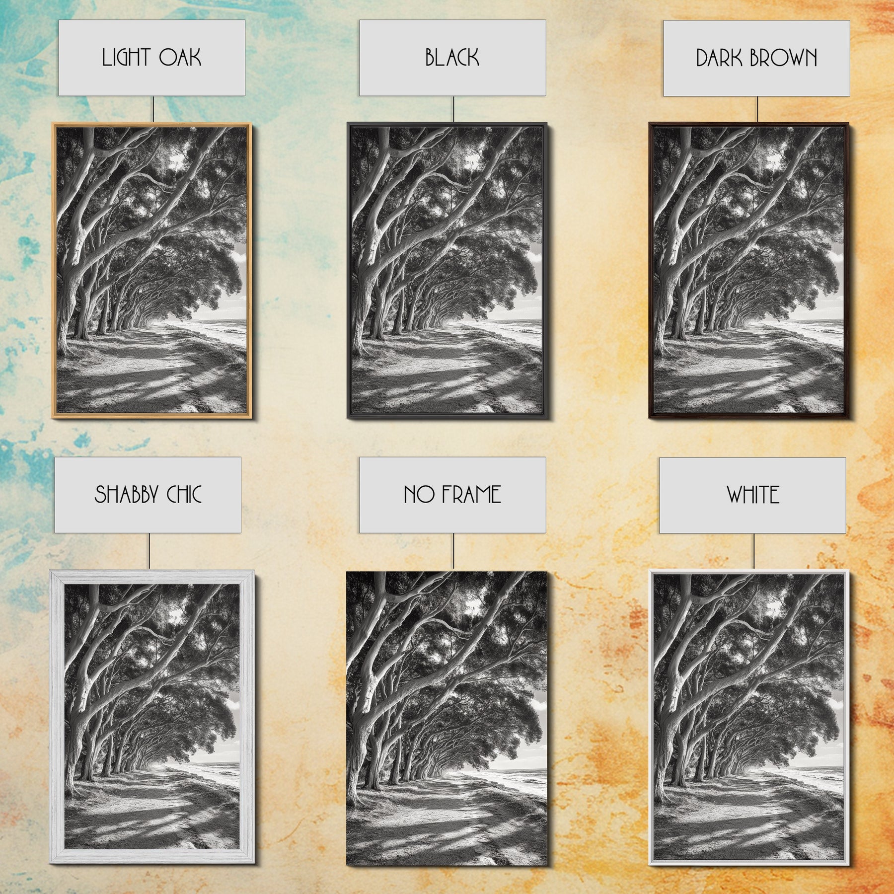 *Optional frames add a total of 1.5 inches to each dimension, for example a 10x20 canvas with a frame will be 11.5 by 21.5 inches total. All framed canvas are 1.5" total depth.