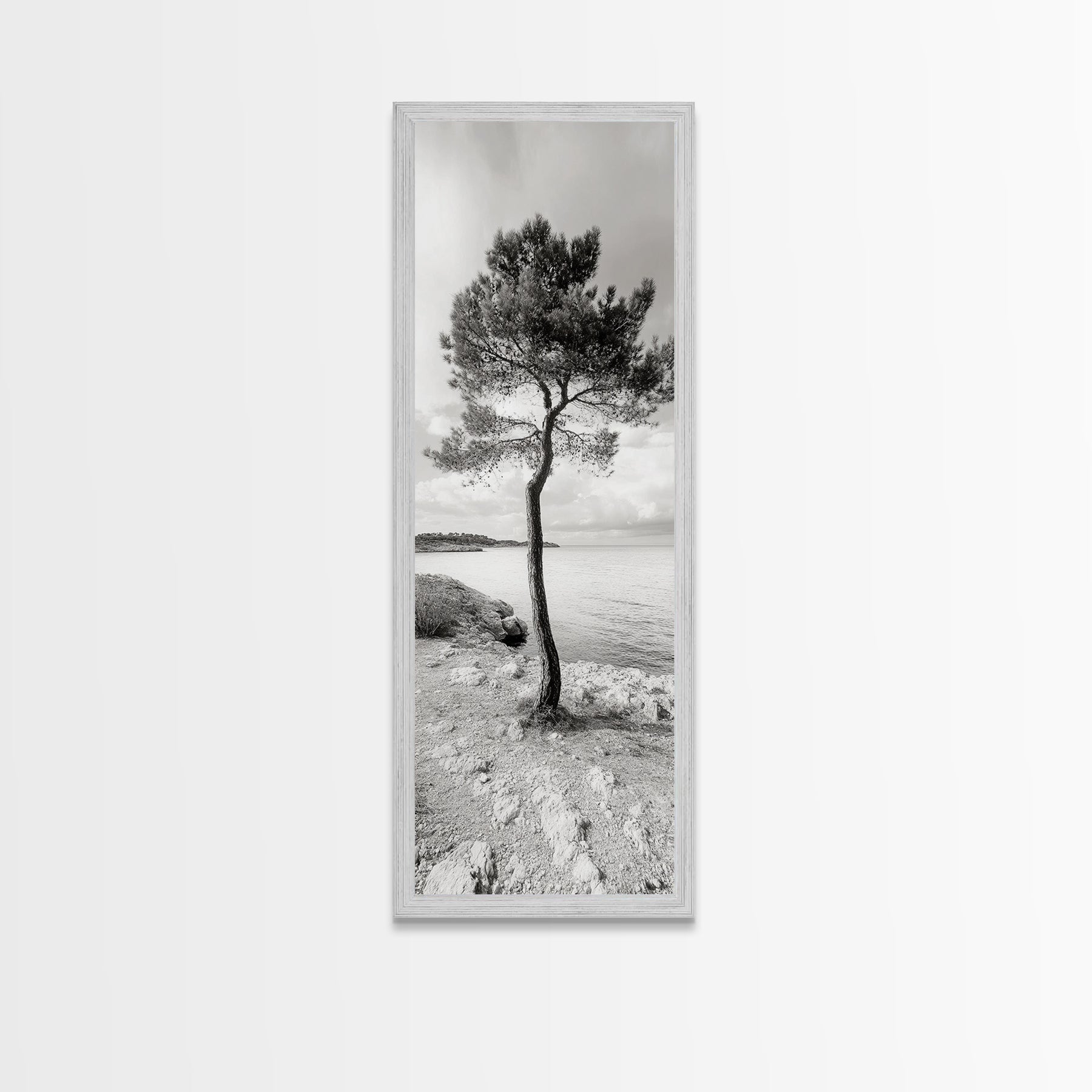 Coastal Tree, Seaside Calm, Lone Pine, Framed Canvas Print, Neutral Wall Art, Minimalist Decor, Nature Inspired Bedroom Print