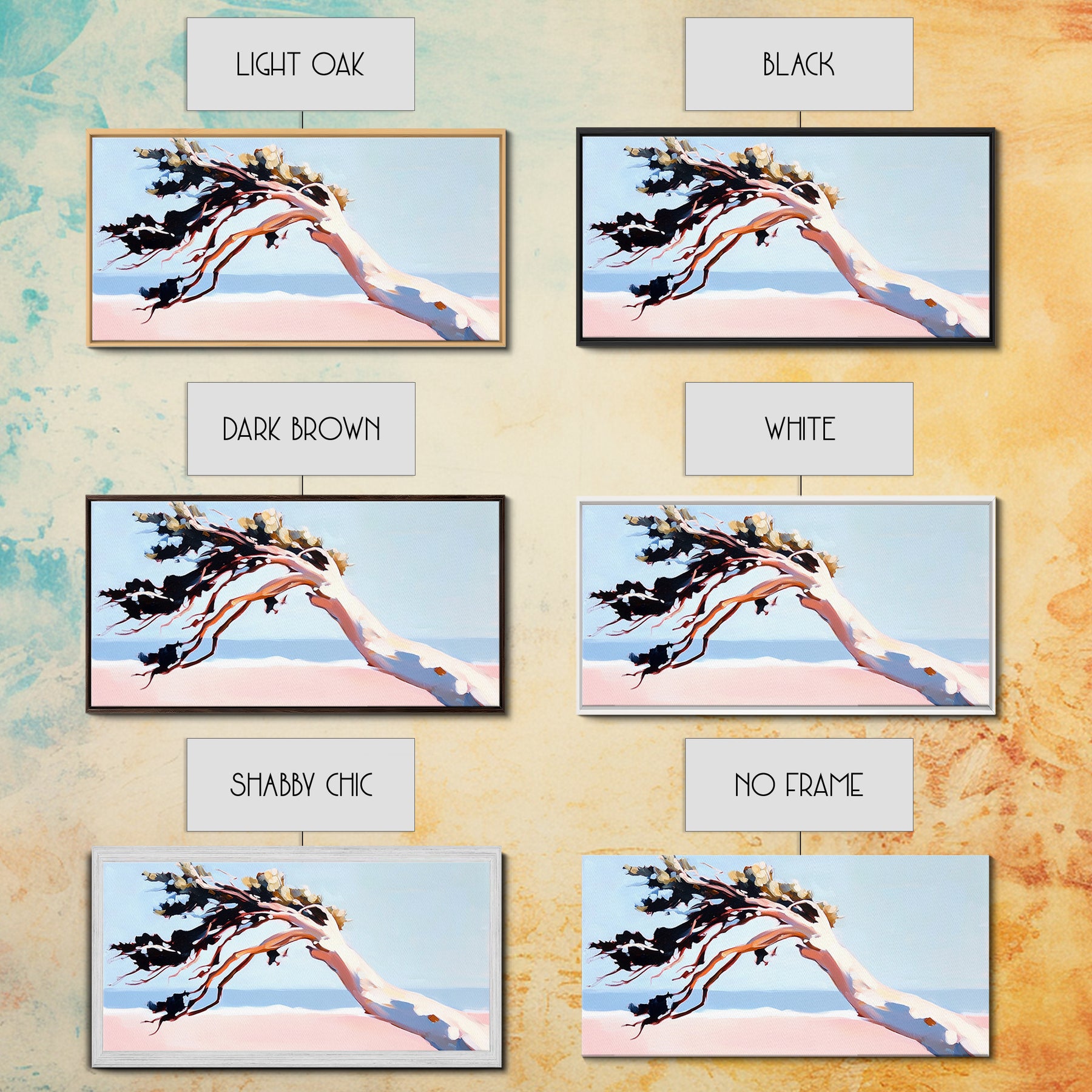 Coastal Tree, Windy Beach, Ocean Breeze, Framed Canvas Print, Minimalist Art, Coastal Wall Art, Living Room Wall Art, Beach House Decor