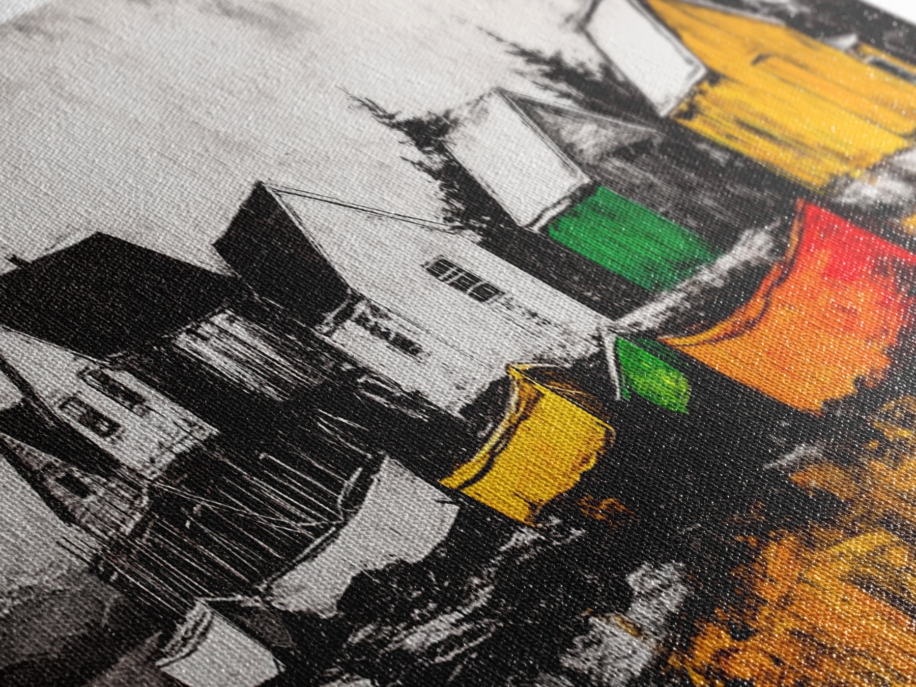 Most of our canvases are made in the USA, with the exception of canvases ordered with the light oak unstained frames, and any large canvases (24x48, 30x60, 16x48 and 20x60) ordered WITH a frame. These are temporarily made in and shipped from Europe, while we try to find a more consistent supplier in the USA.