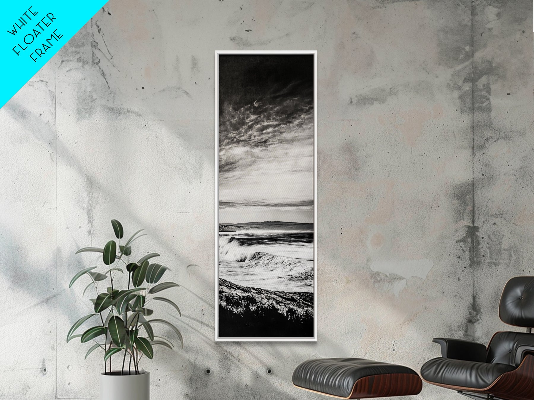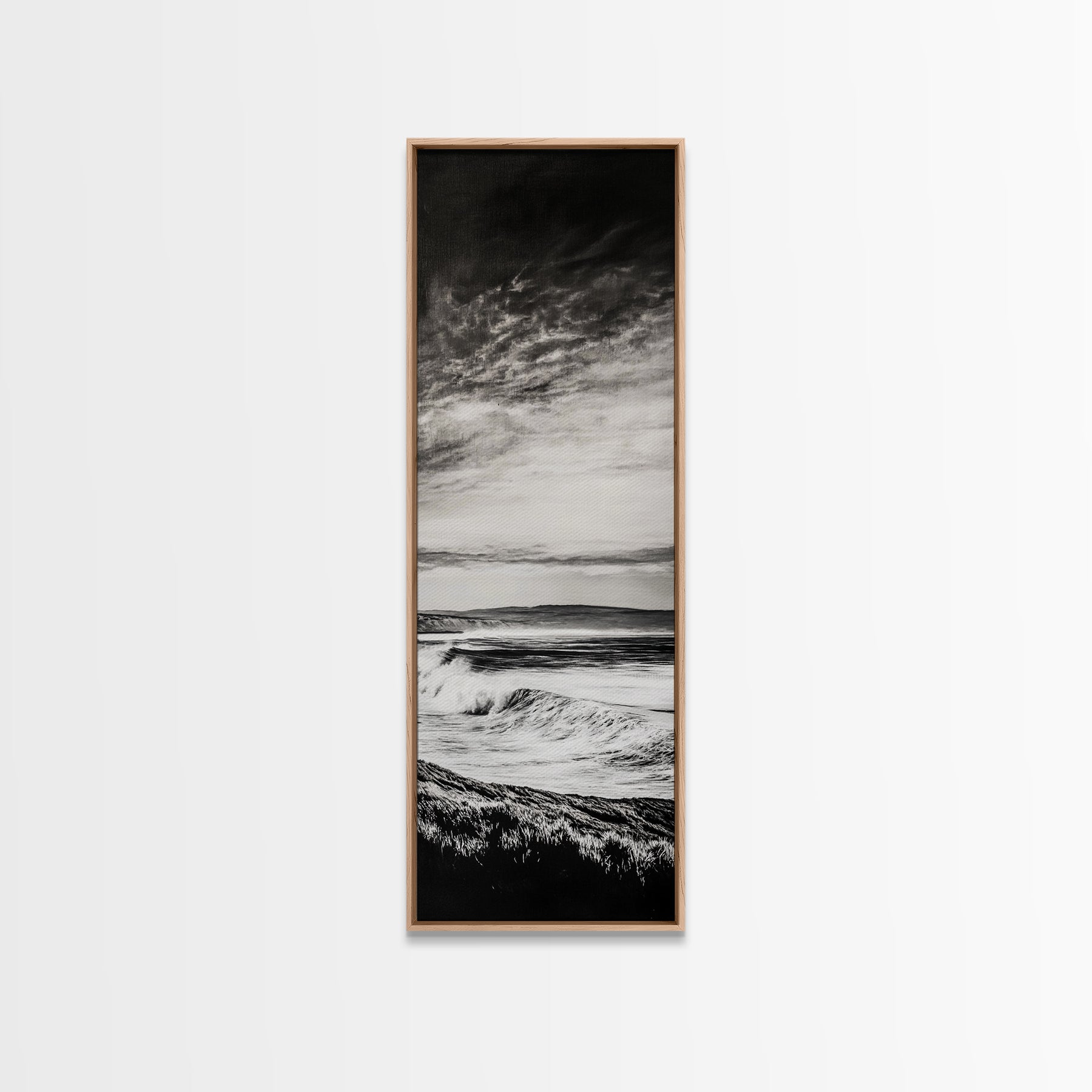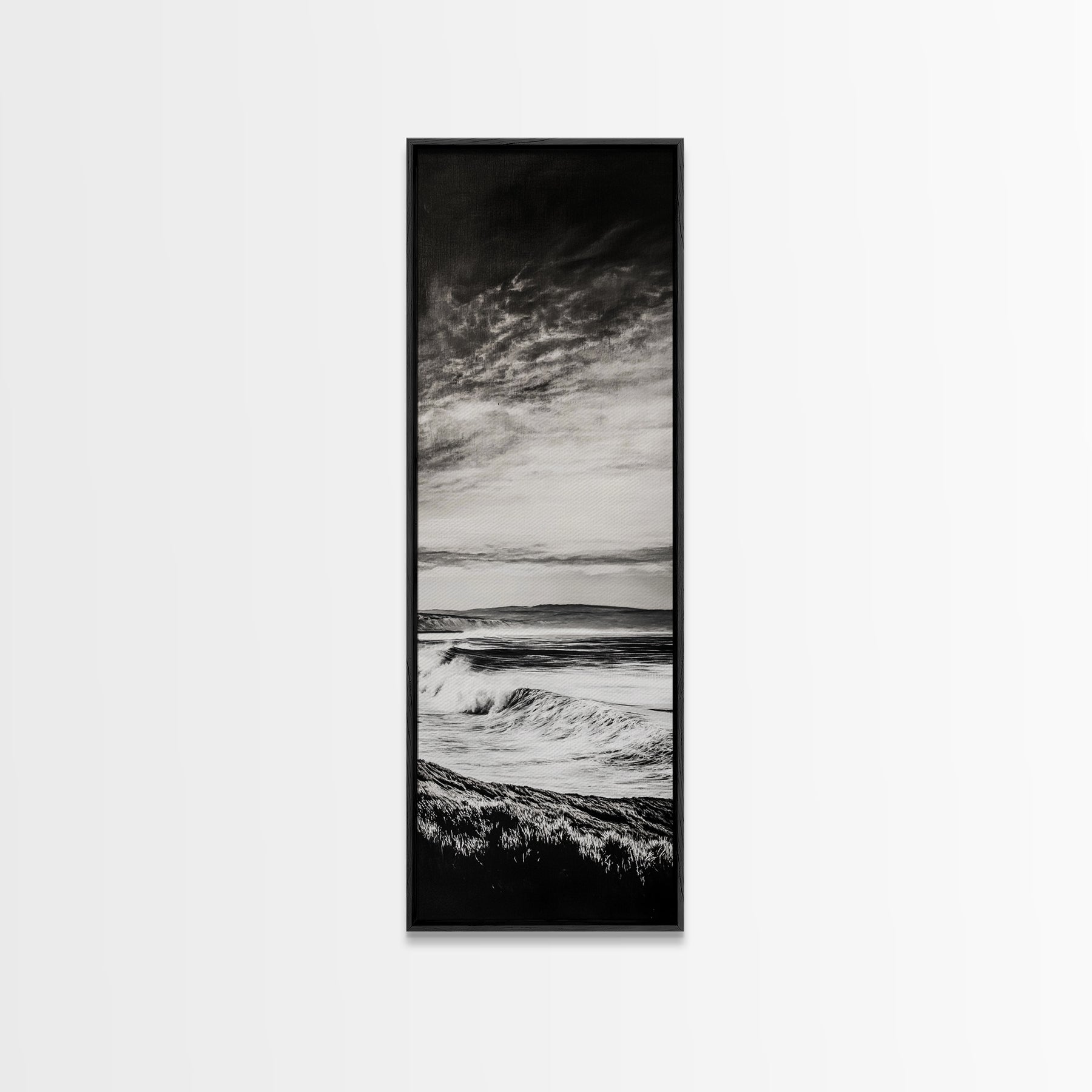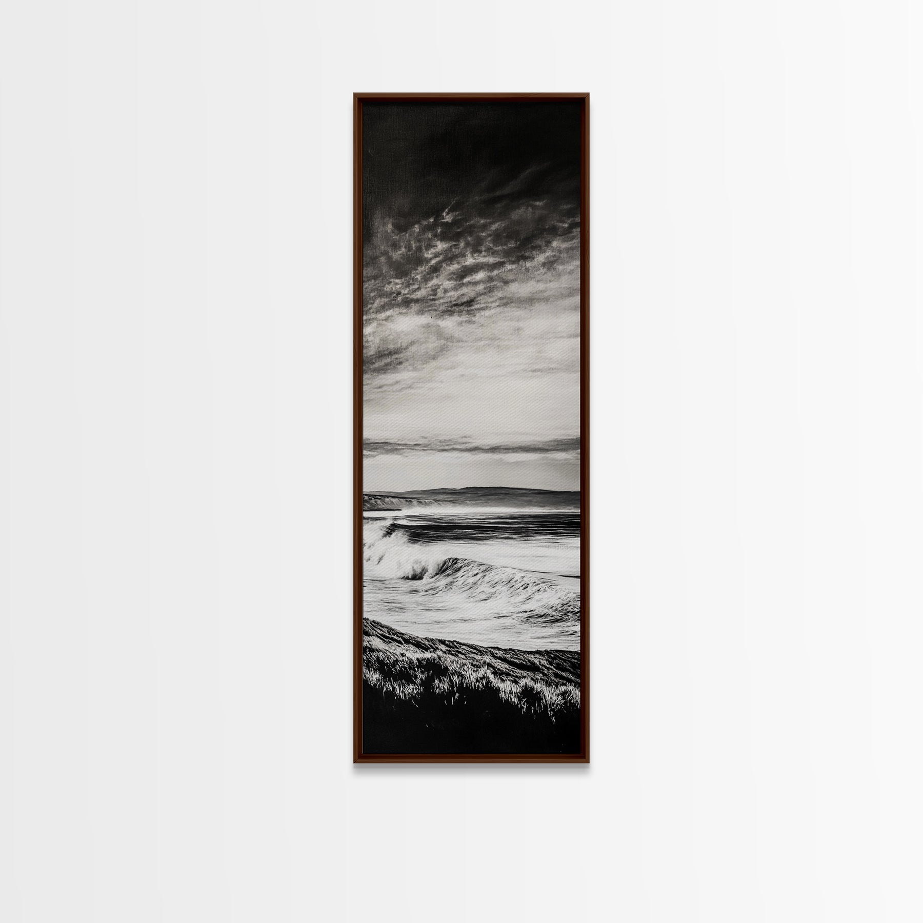 Coastal Waves, Black and White, Ocean Photography, Surf Art, Framed Canvas Print, Minimalist Decor, Beach House Wall Art