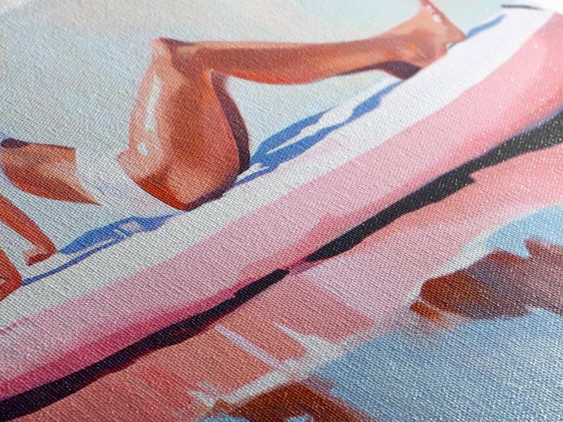 Most of our canvases are made in the USA, with the exception of canvases ordered with the light oak unstained frames, and any large canvases (24x48, 30x60, 16x48 and 20x60) ordered WITH a frame. These are temporarily made in and shipped from Europe, while we try to find a more consistent supplier in the USA.