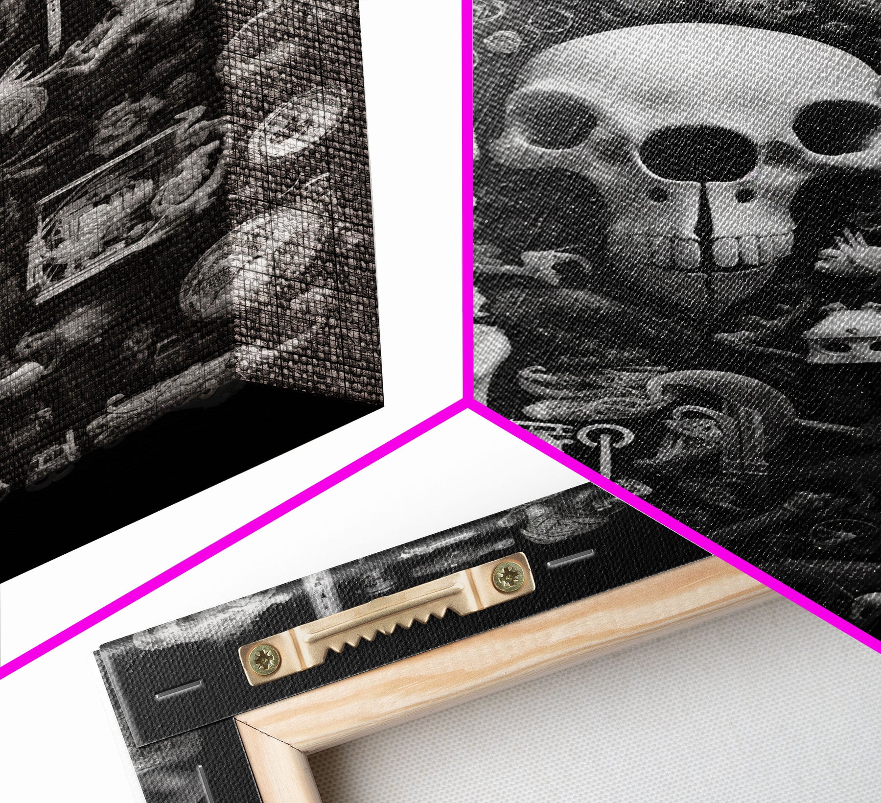 Collection of Trinkets Wall Art, Weird Wall Art, Black And White, Minimalist Print, Wall Decor, Canvas Print, Wall Art, Framed Canvas