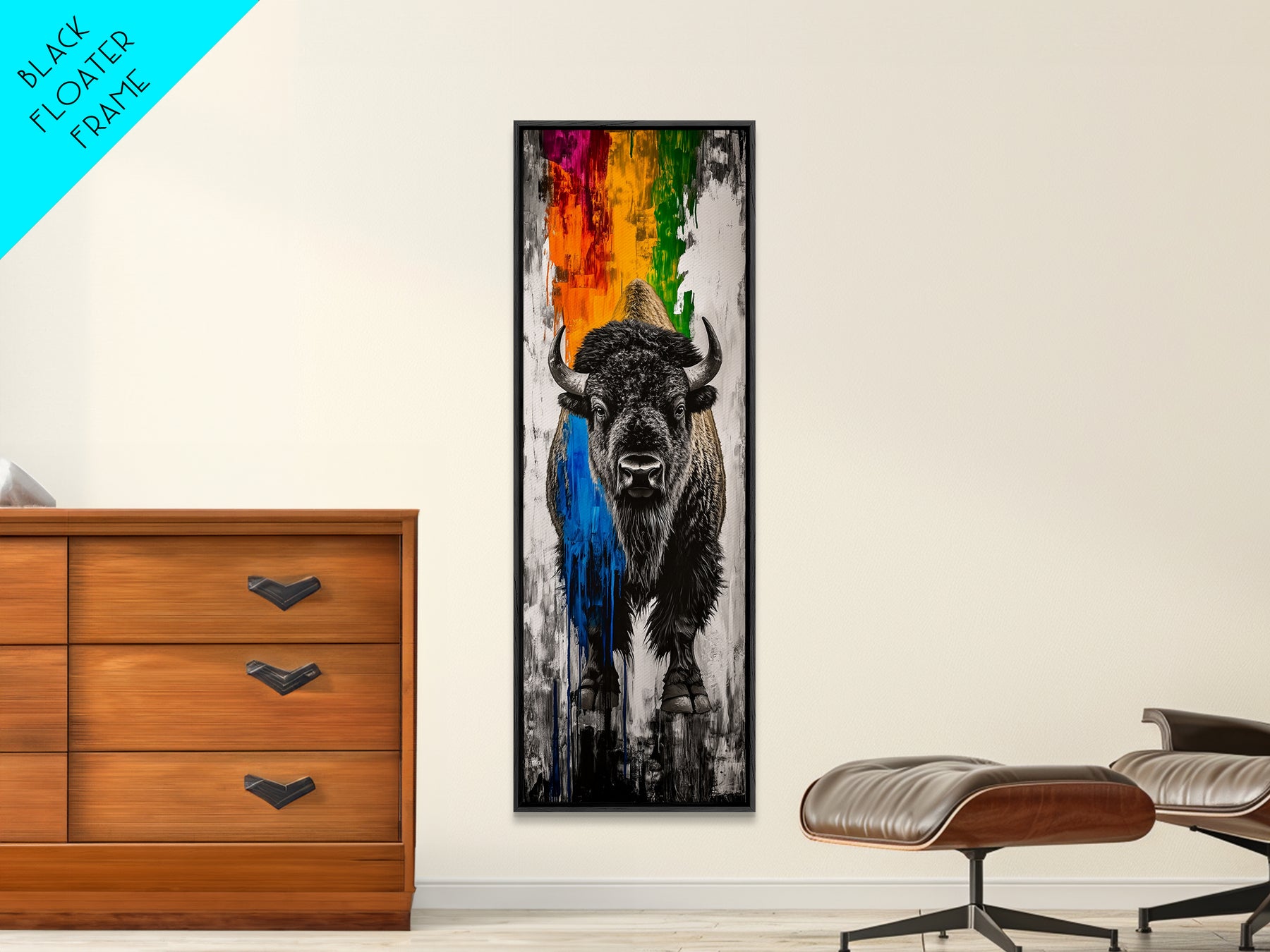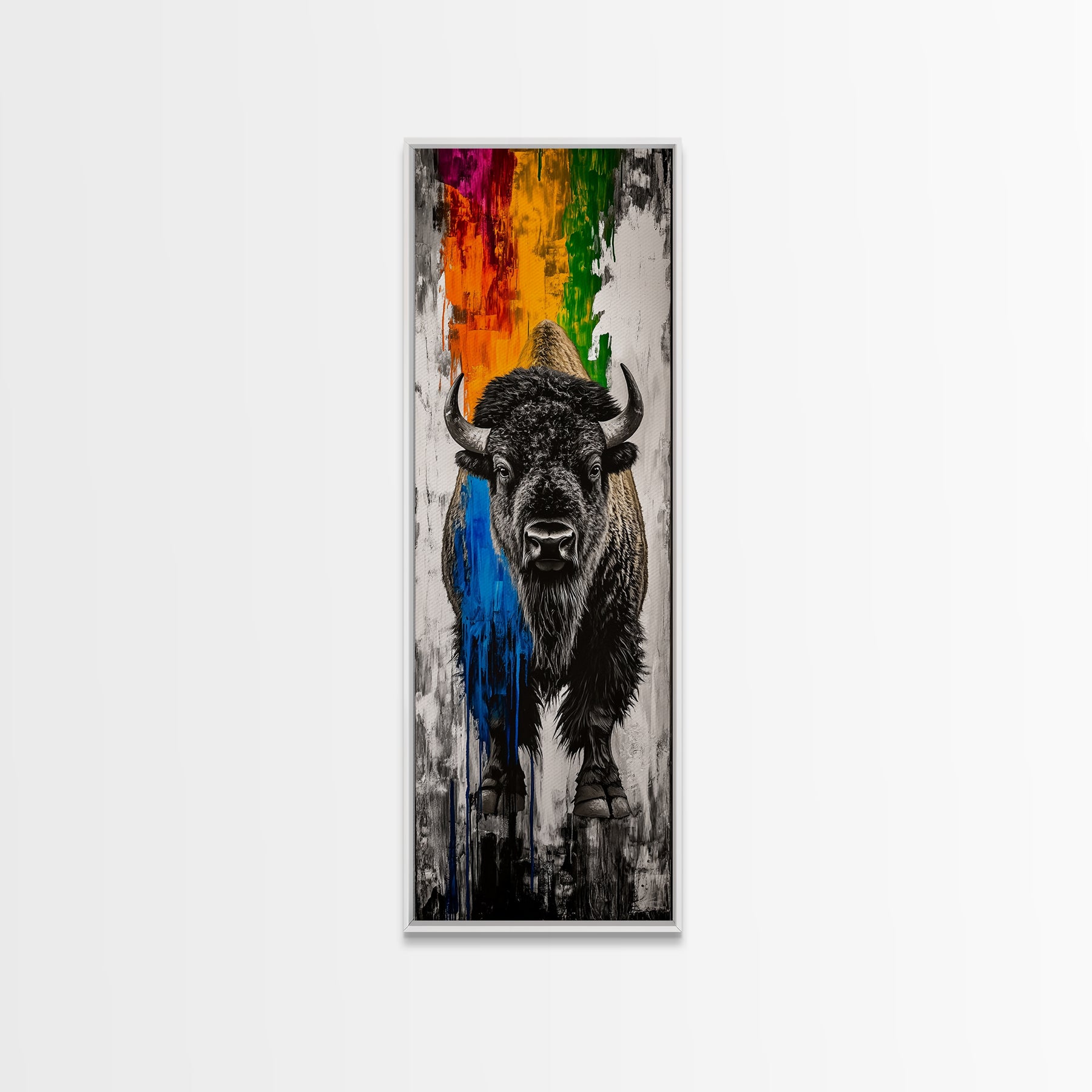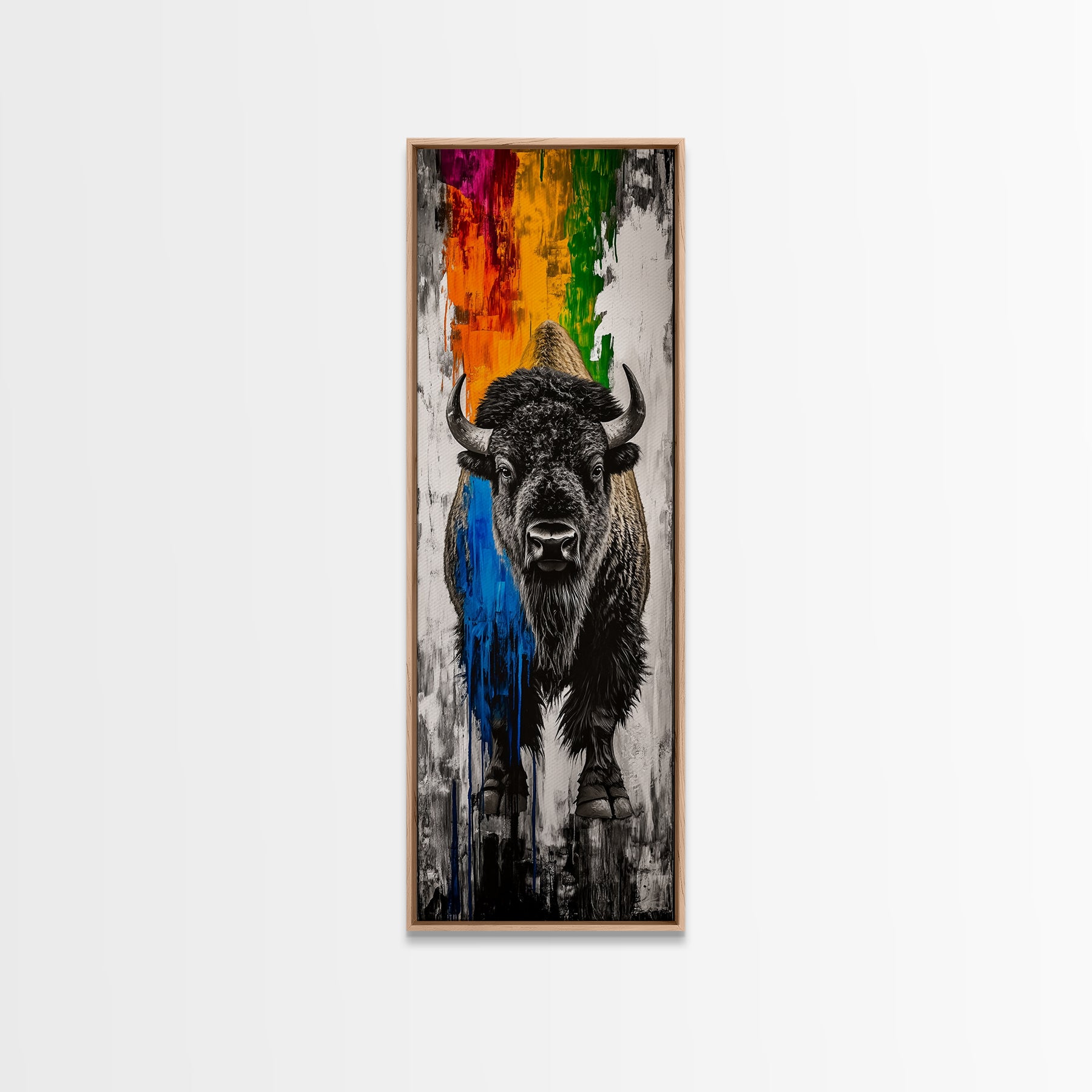 Colorful Bison Canvas Print Pink Orange Wall Art Southwest Wall Art Boho Art Tall Narrow Art Living Room Art Above Couch Art