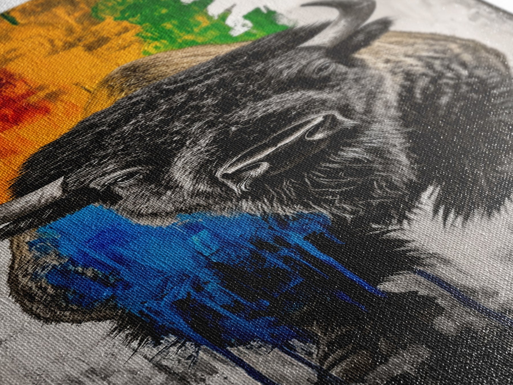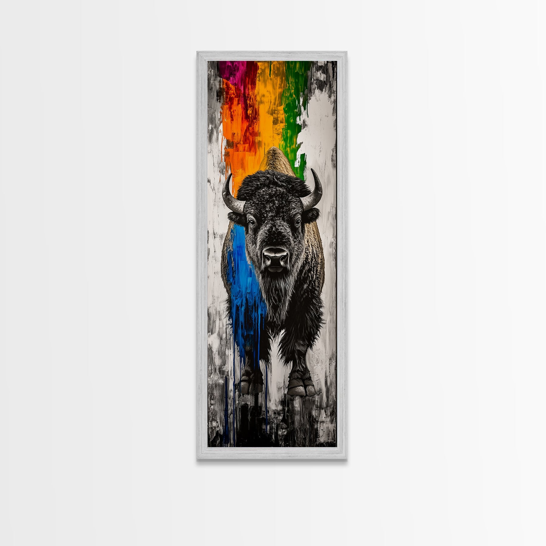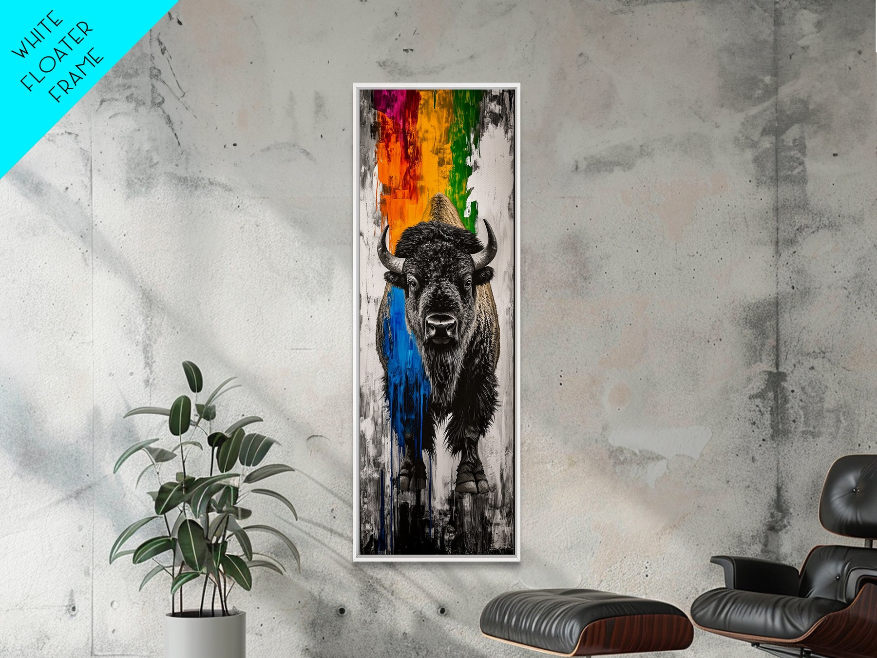 Colorful Bison Canvas Print Pink Orange Wall Art Southwest Wall Art Boho Art Tall Narrow Art Living Room Art Above Couch Art