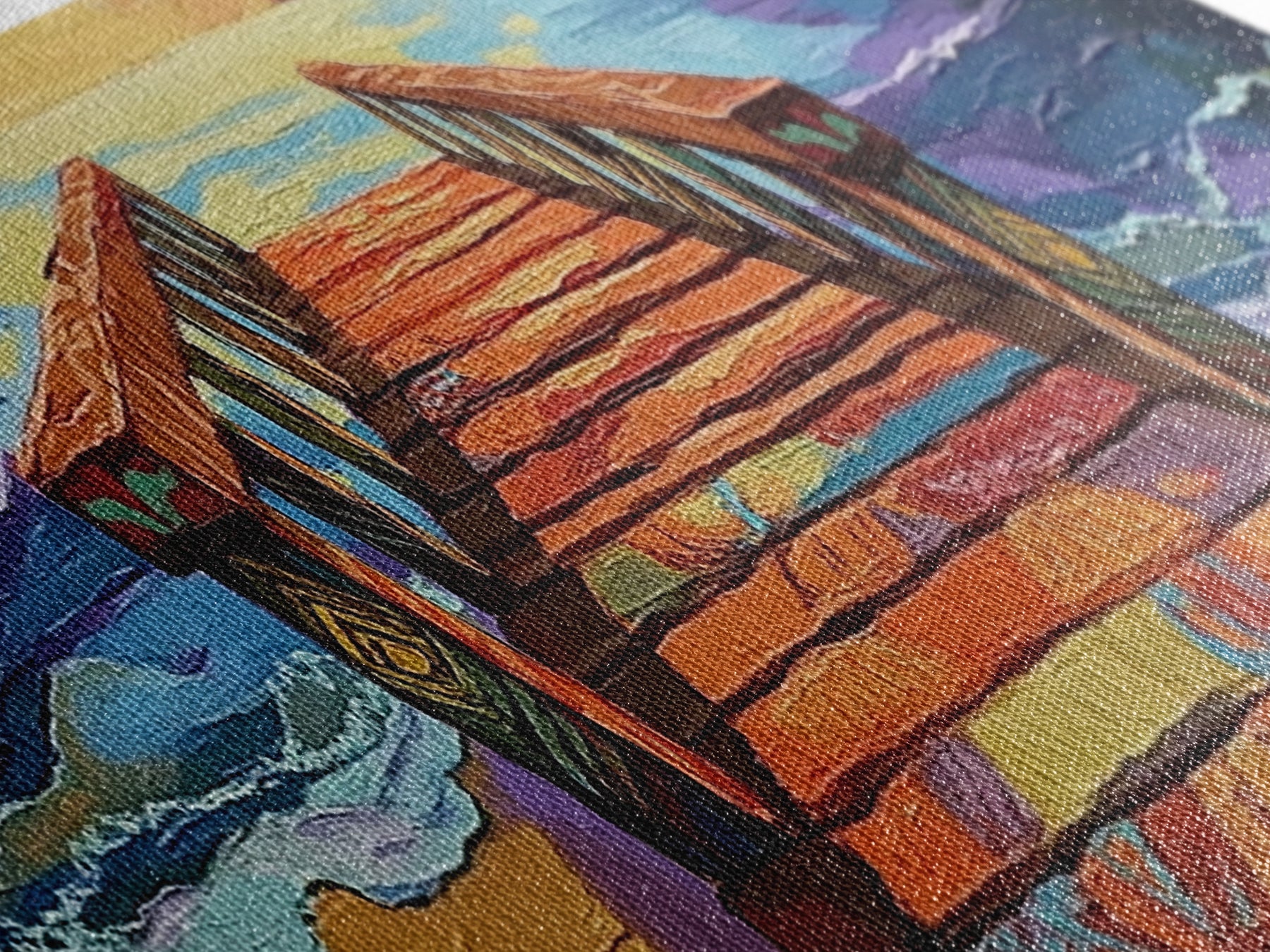 Most of our canvases are made in the USA, with the exception of canvases ordered with the light oak unstained frames, and any large canvases (24x48, 30x60, 16x48 and 20x60) ordered WITH a frame. These are temporarily made in and shipped from Europe, while we try to find a more consistent supplier in the USA.