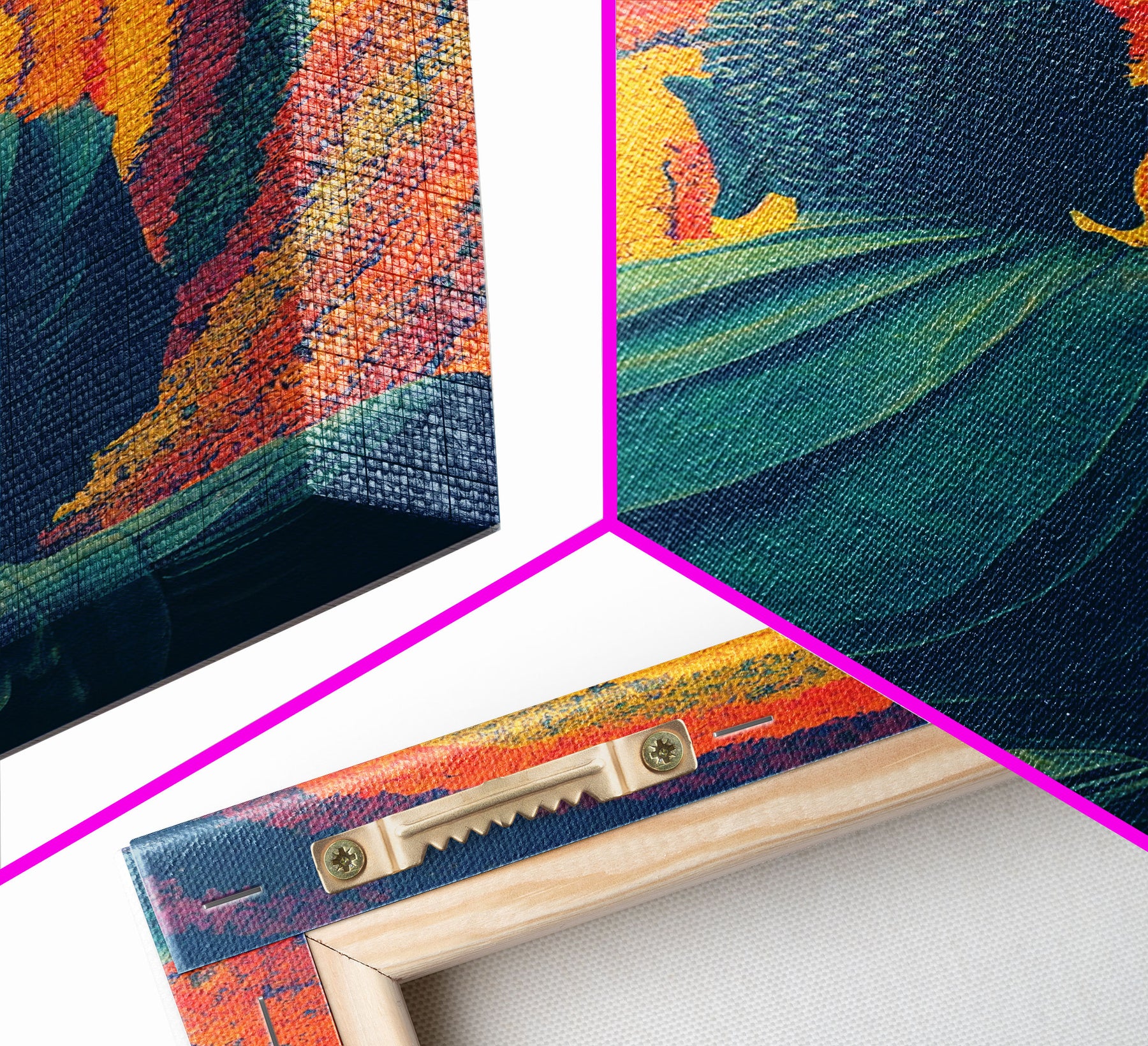 Hello and thank you for taking the time to view our modern high quality giclée artwork! We offer both posters and stretched canvas prints. Our posters are printed on Ultra Matte 60 lb / 230 GSM high quality photo paper, with a thickness of 10 mil. Our canvases are printed on museum grade 350 GSM canvas material with ECO friendly archival grade ink, then hand stretched and stapled over premium, FSC certified and shrink resistant frames. Designed and built to last a lifetime.