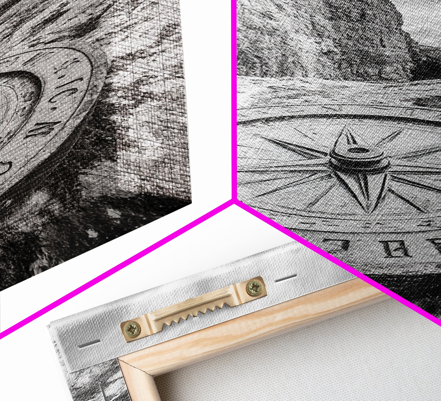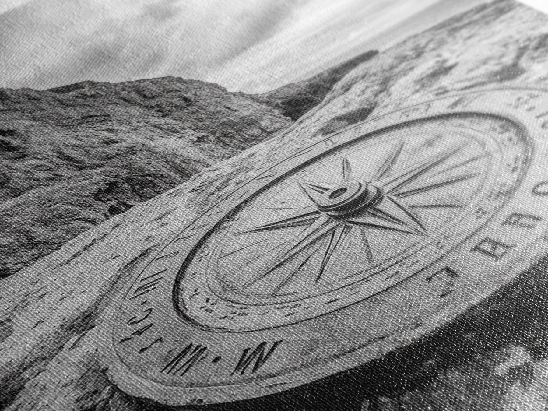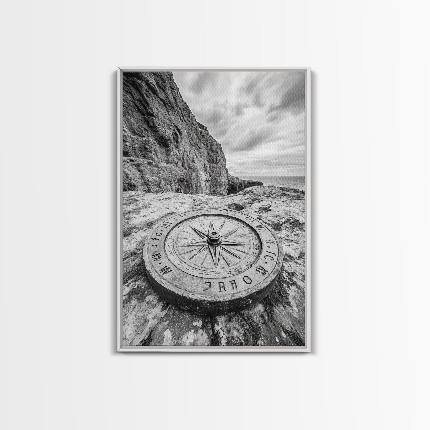 Compass On Cliff, Adventure Travel Art, Nautical Wall Decor, Framed Canvas Print, Rustic Office Art, Nature Explorer Gift Idea