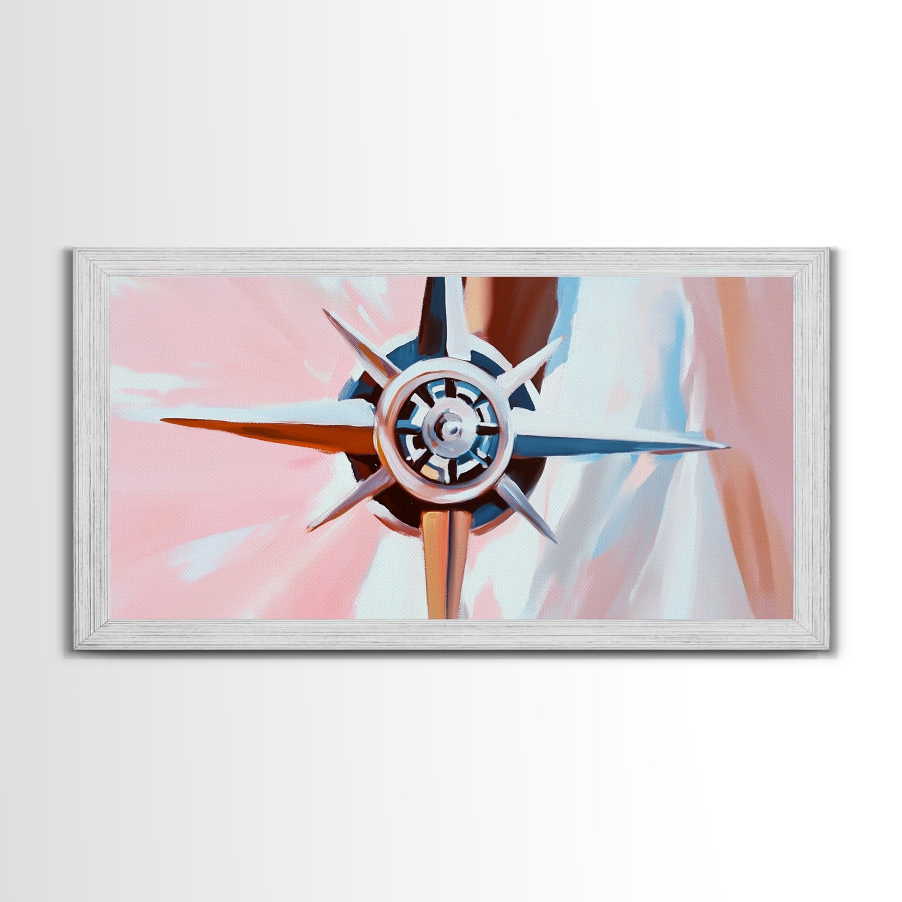 Compass Rose, Nautical Art, Pink Tones, Maritime Decor, Framed Canvas Print, Coastal Home Art, Boho Wall Art, Office Wall Decor