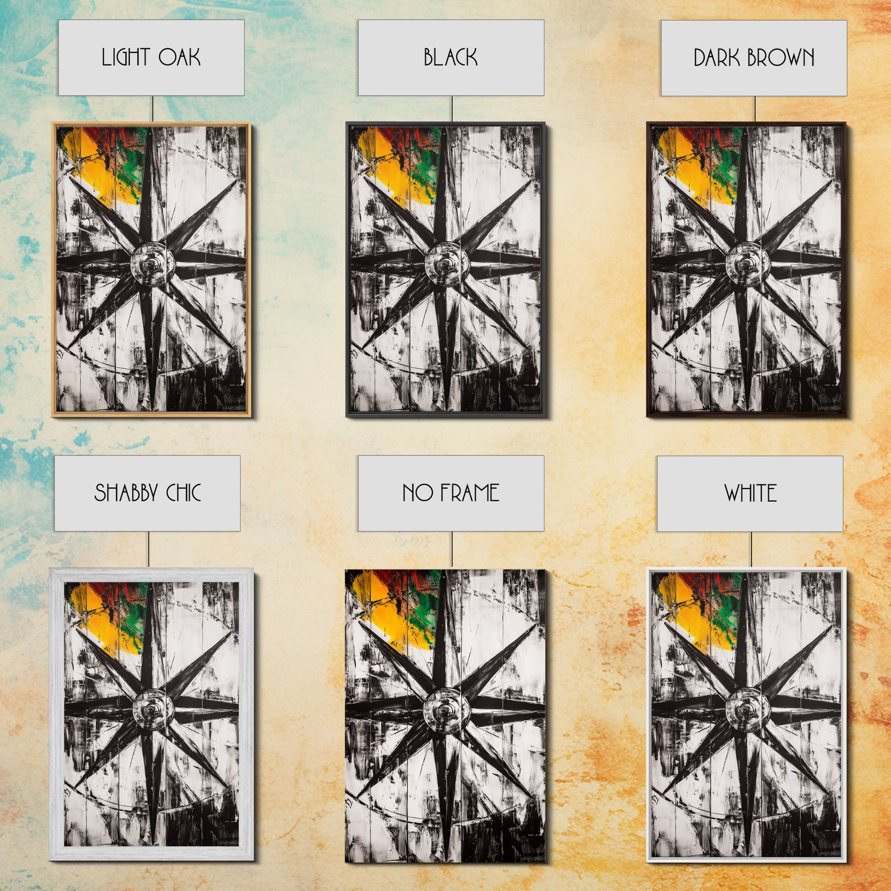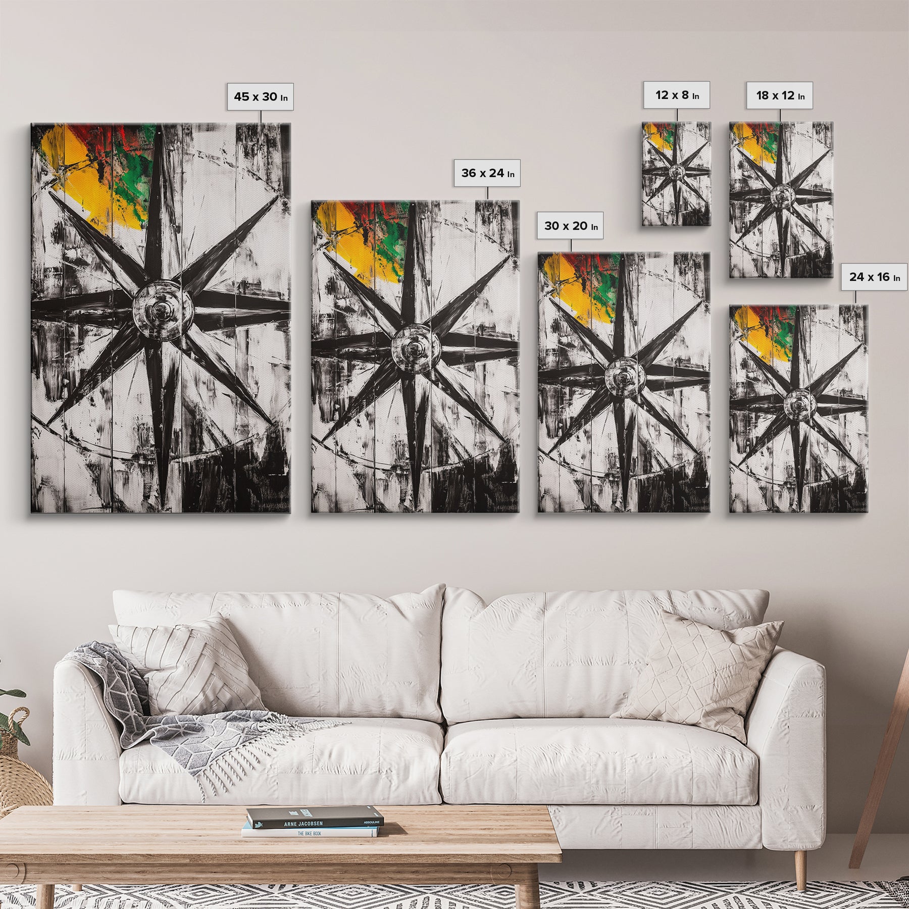Compass Rose, Nautical Symbol, Abstract Design, Canvas Print, Black and White Art, Coastal Wall Decor, Modern Minimalist Artwork