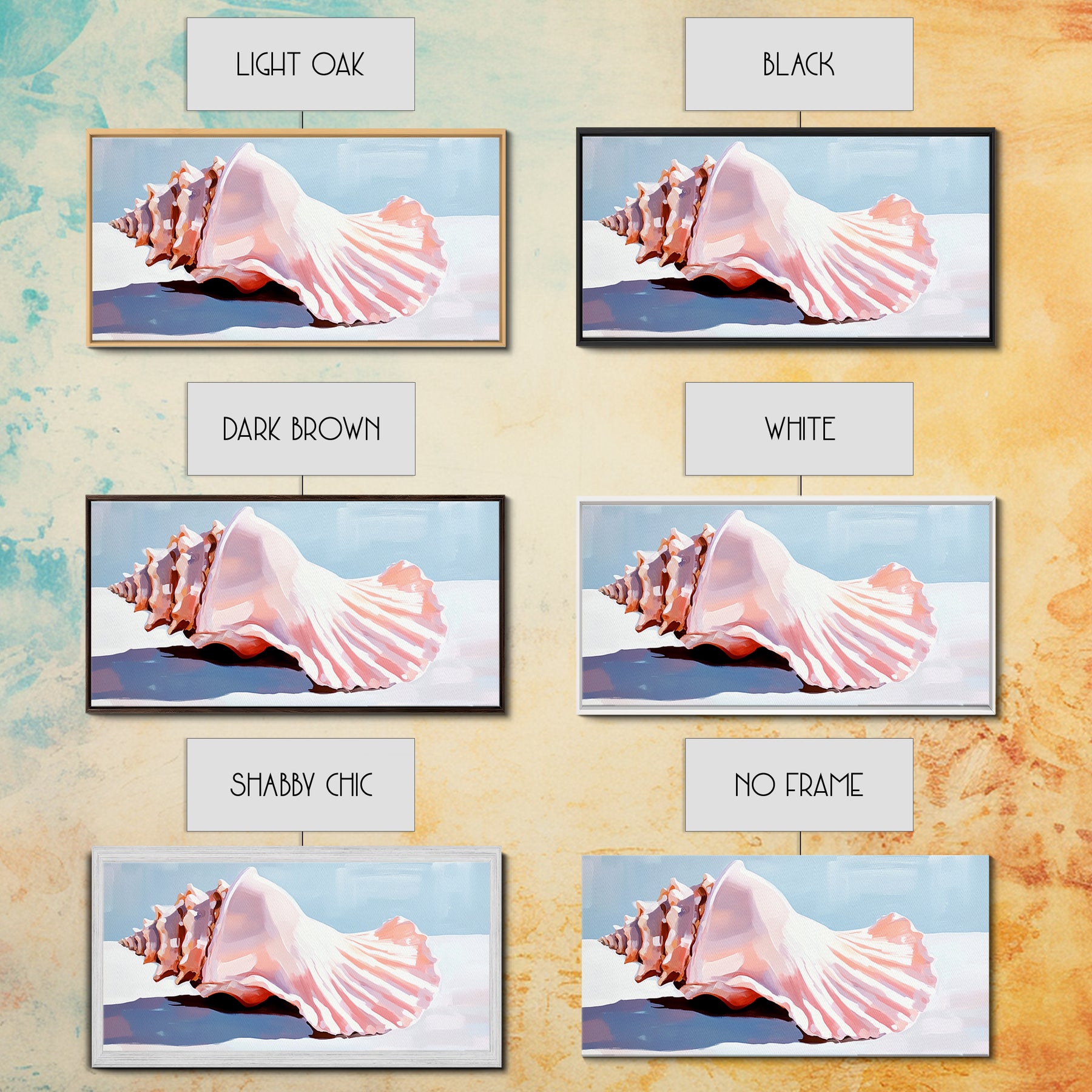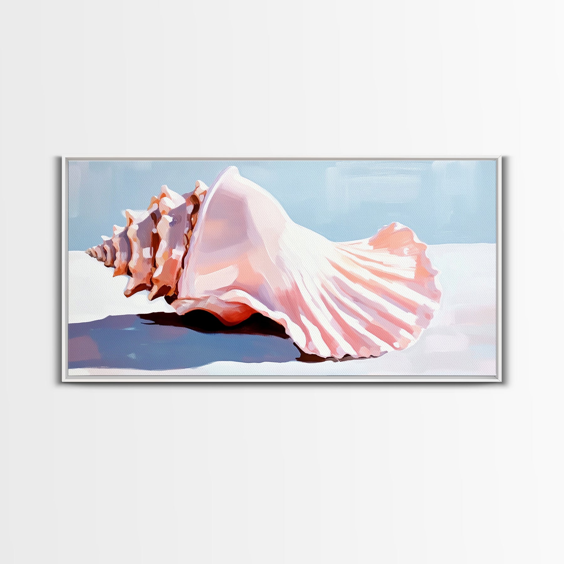 Conch Shell, Beach, Pastel, Framed Canvas Print, Coastal Wall Art, Tropical Decor, Seashell Aesthetic, Living Room Accent Piece