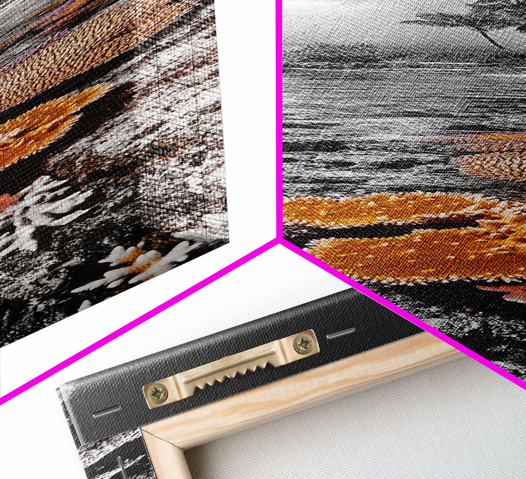 Hello and thank you for taking the time to view our modern high quality giclée artwork! We offer both posters and stretched canvas prints. Our posters are printed on Ultra Matte 60 lb / 230 GSM high quality photo paper, with a thickness of 10 mil. Our canvases are printed on museum grade 350 GSM canvas material with ECO friendly archival grade ink, then hand stretched and stapled over premium, FSC certified and shrink resistant frames. Designed and built to last a lifetime.