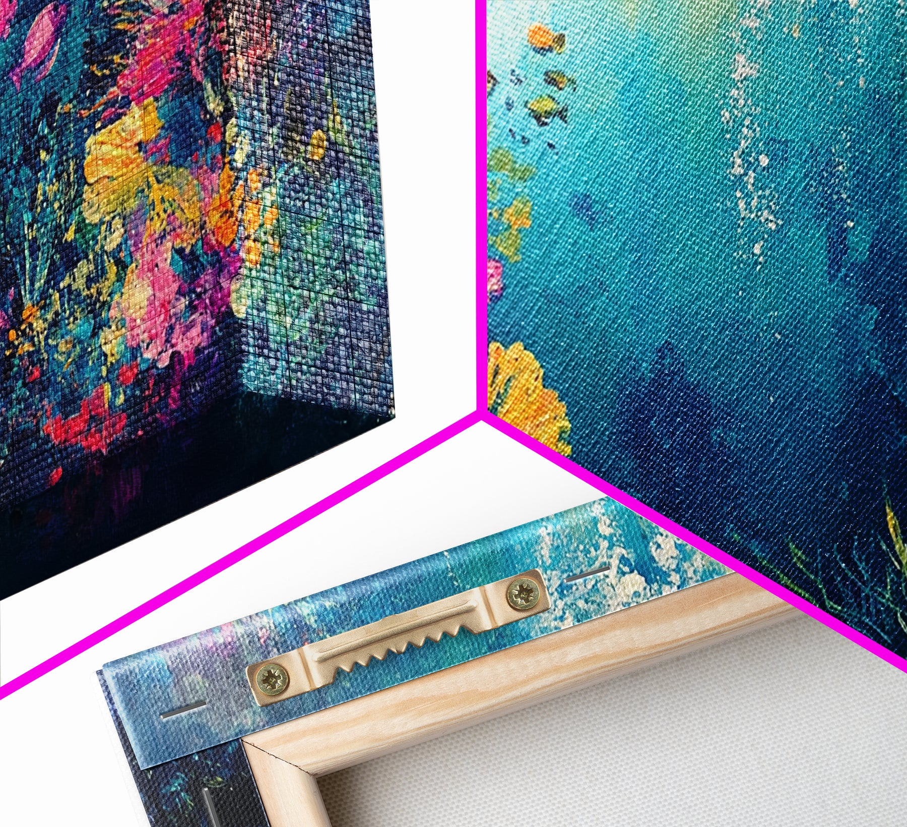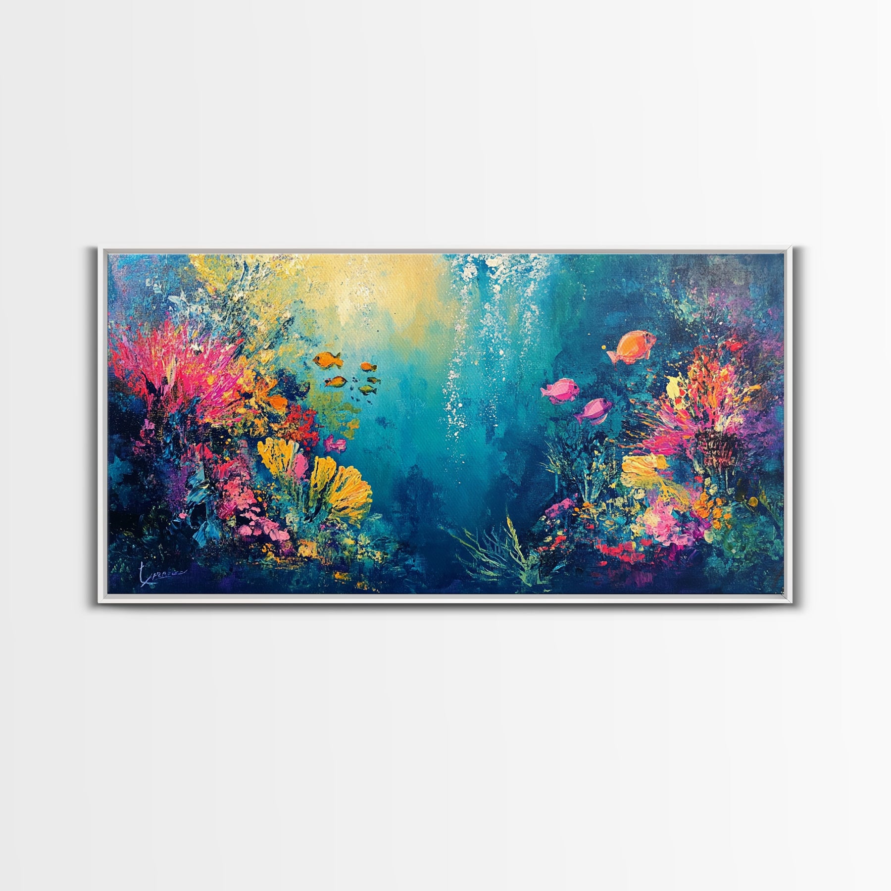 Coral Reef Painting, Coastal Decor, Ocean Wall Art, Nautical Painting, Framed Canvas Print, Underwater Artwork, Marine Life Art