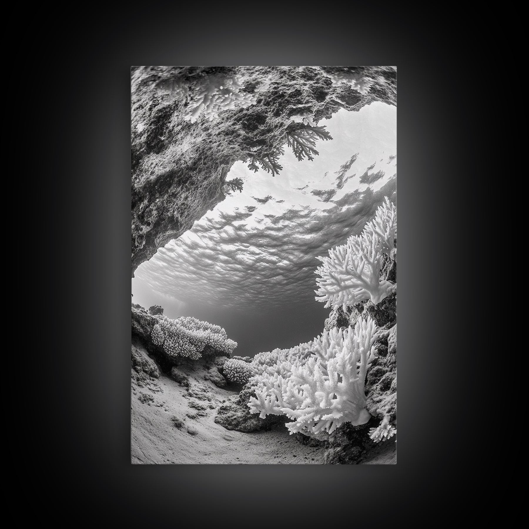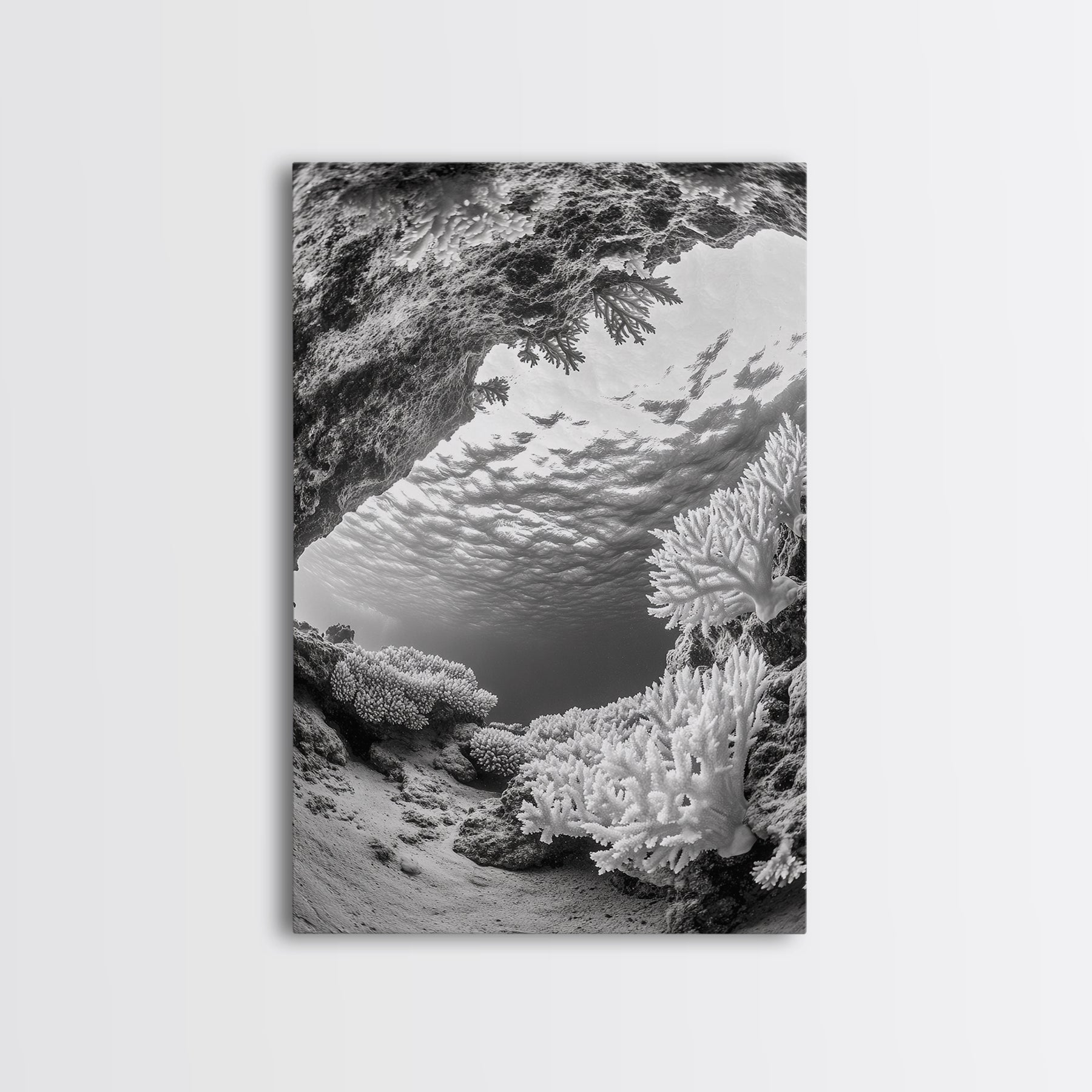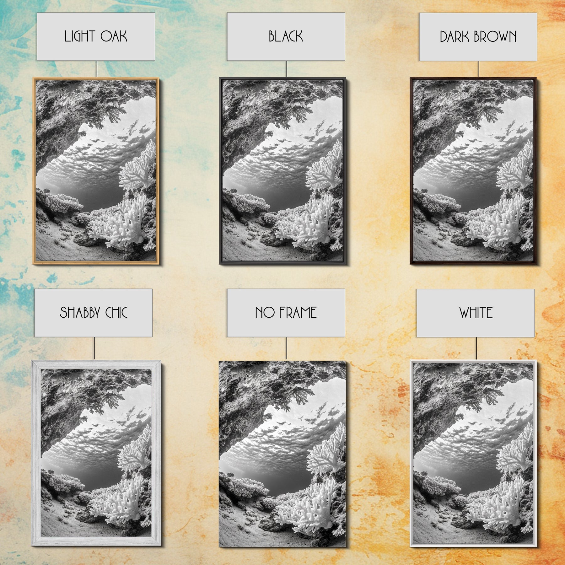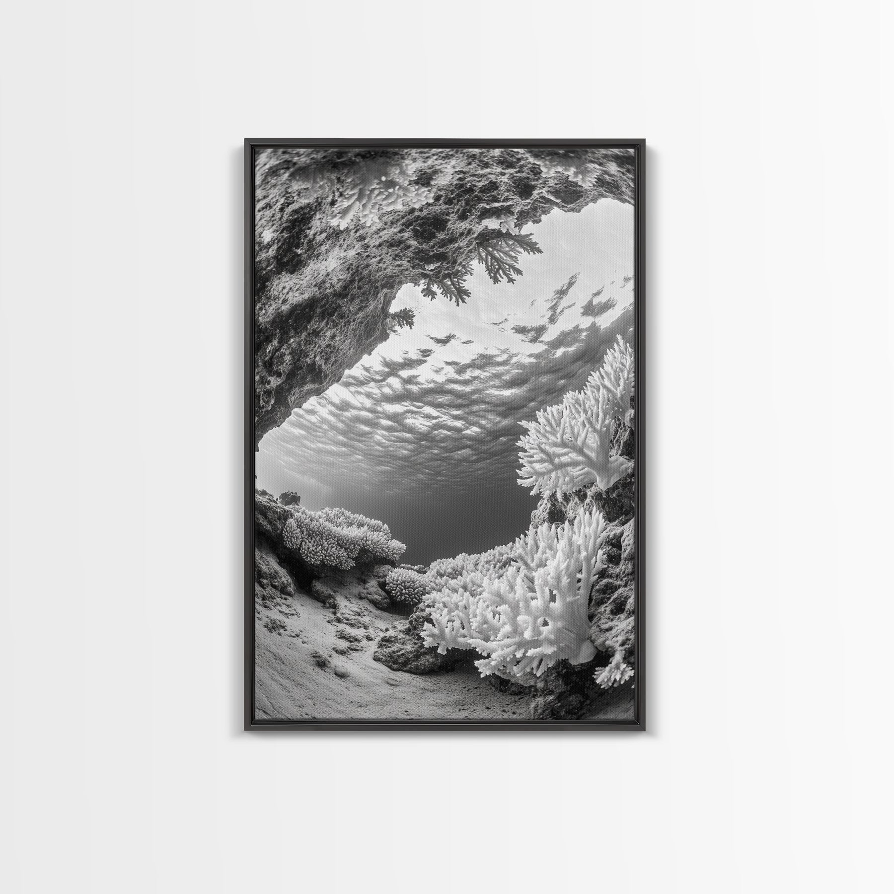 Coral Reef Underwater, Ocean Photography, Marine Nature Scene, Framed Canvas Print, Bathroom Wall Art, Coastal Minimalist Decor