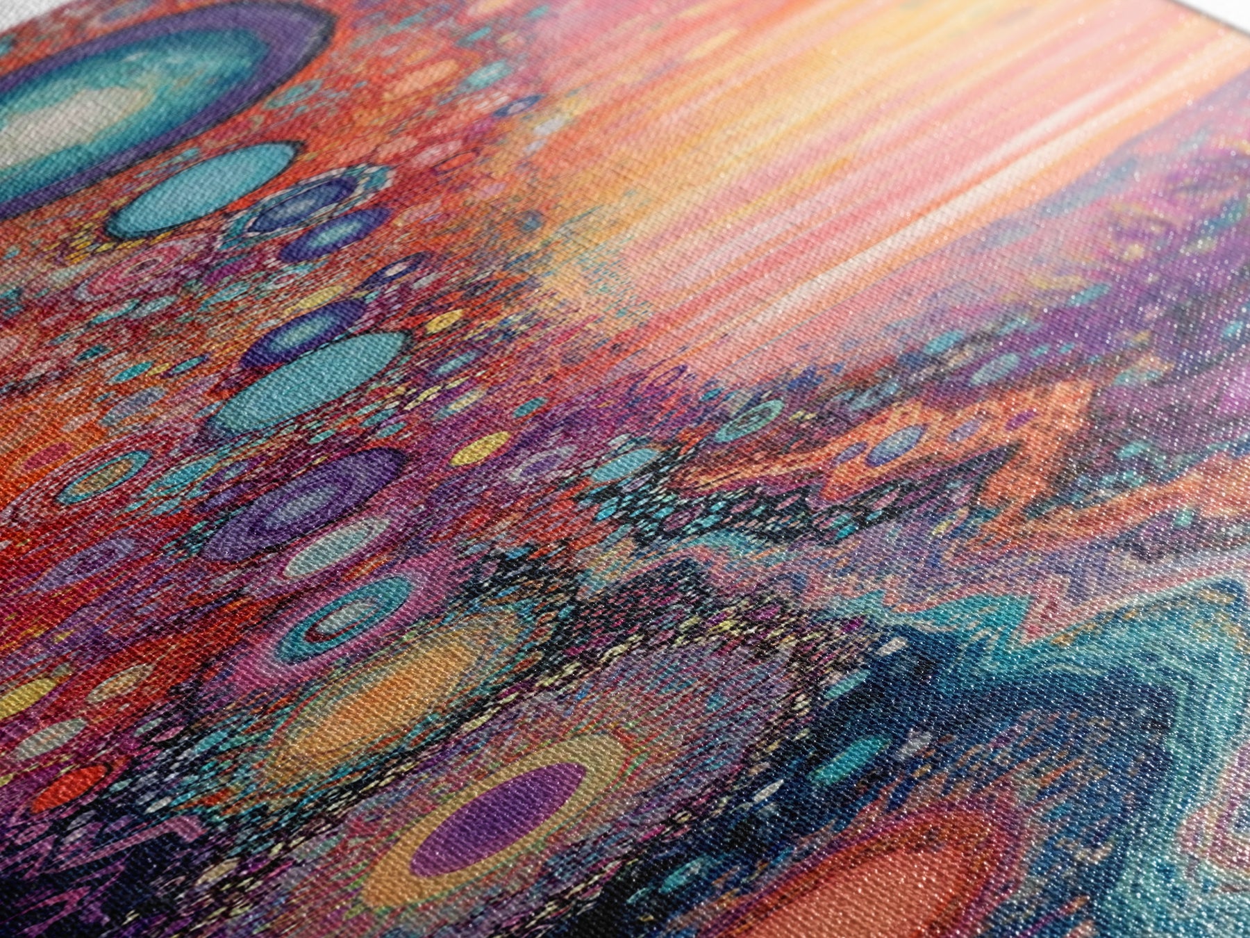 Most of our canvases are made in the USA, with the exception of canvases ordered with the light oak unstained frames, and any large canvases (24x48, 30x60, 16x48 and 20x60) ordered WITH a frame. These are temporarily made in and shipped from Europe, while we try to find a more consistent supplier in the USA.