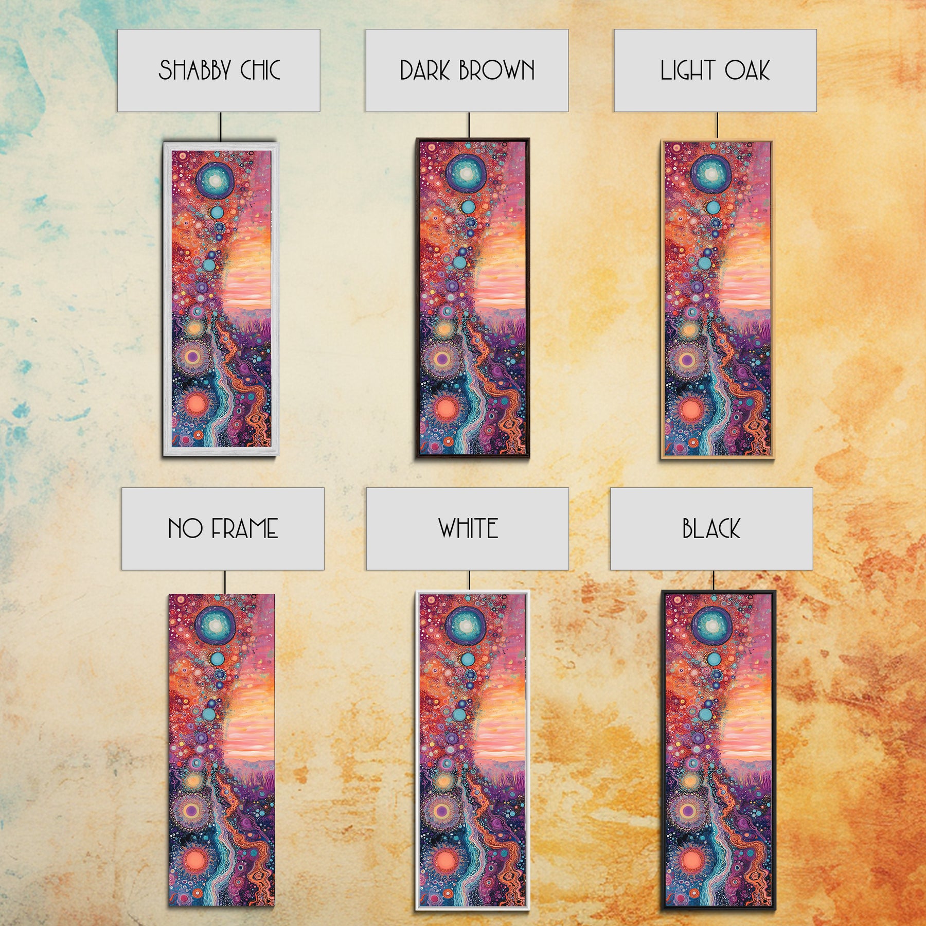 *Optional frames add a total of 1.5 inches to each dimension, for example a 10x20 canvas with a frame will be 11.5 by 21.5 inches total. All framed canvas are 1.5" total depth.