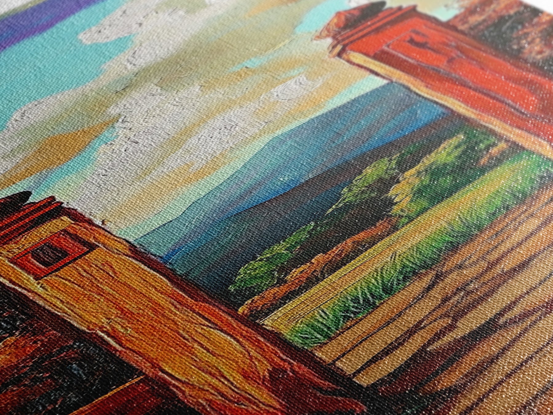 Most of our canvases are made in the USA, with the exception of canvases ordered with the light oak unstained frames, and any large canvases (24x48, 30x60, 16x48 and 20x60) ordered WITH a frame. These are temporarily made in and shipped from Europe, while we try to find a more consistent supplier in the USA.
