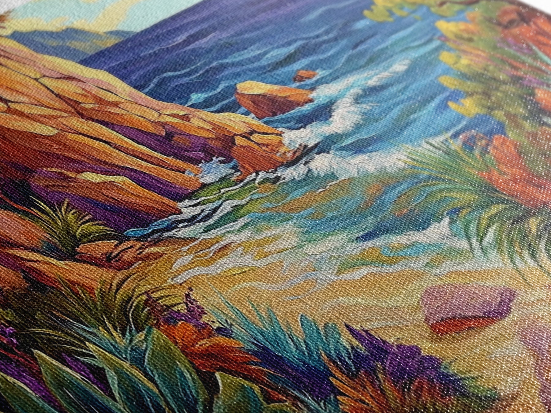 Most of our canvases are made in the USA, with the exception of canvases ordered with the light oak unstained frames, and any large canvases (24x48, 30x60, 16x48 and 20x60) ordered WITH a frame. These are temporarily made in and shipped from Europe, while we try to find a more consistent supplier in the USA.