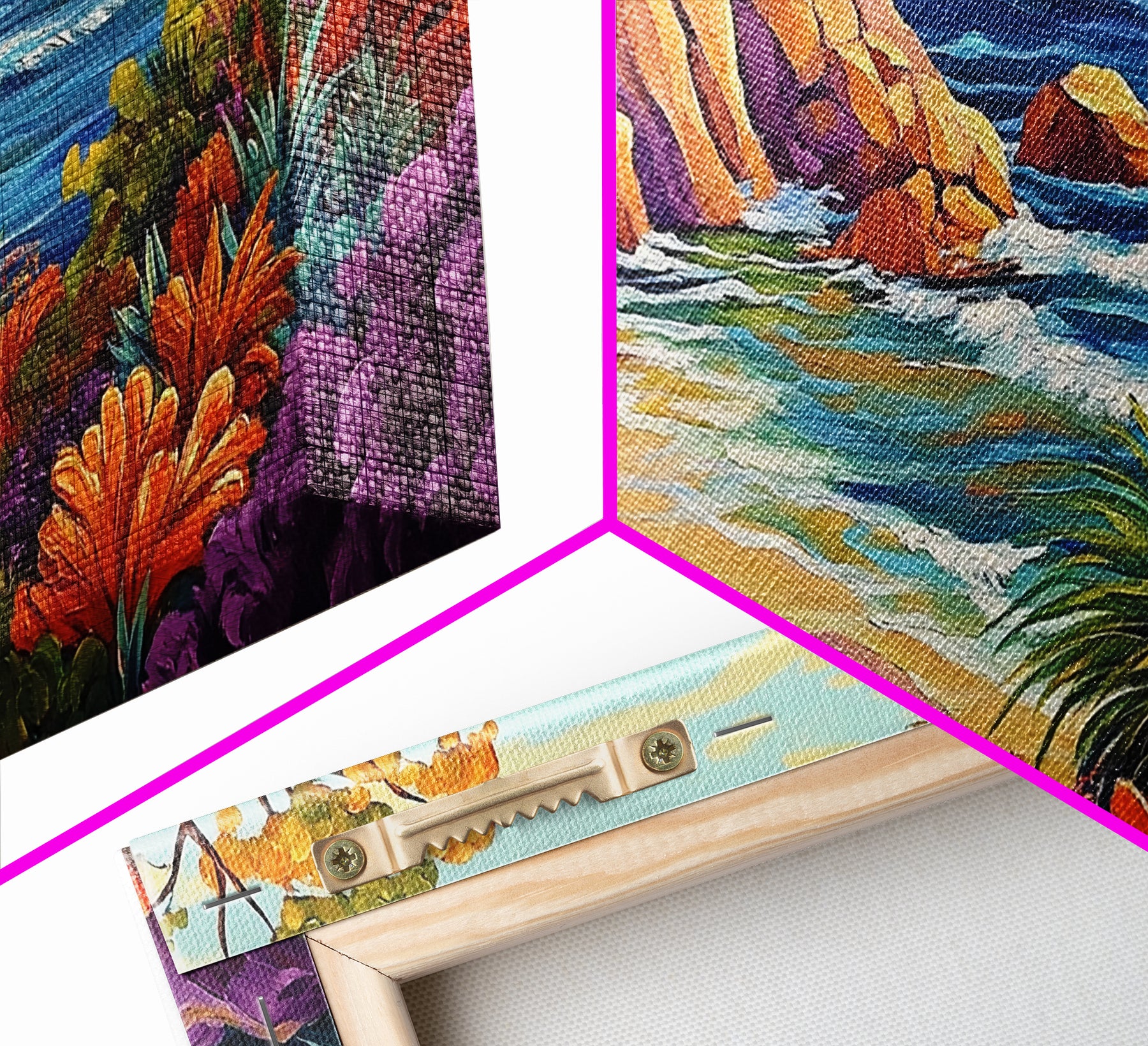 Cove Beach, Tropical, Hideaway, Coastal beach hideaway Canvas Print, tropical wall art, bedroom ocean view, vibrant color landscape