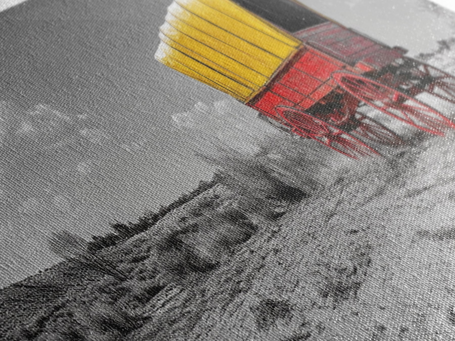 Most of our canvases are made in the USA, with the exception of canvases ordered with the light oak unstained frames, and any large canvases (24x48, 30x60, 16x48 and 20x60) ordered WITH a frame. These are temporarily made in and shipped from Europe, while we try to find a more consistent supplier in the USA.