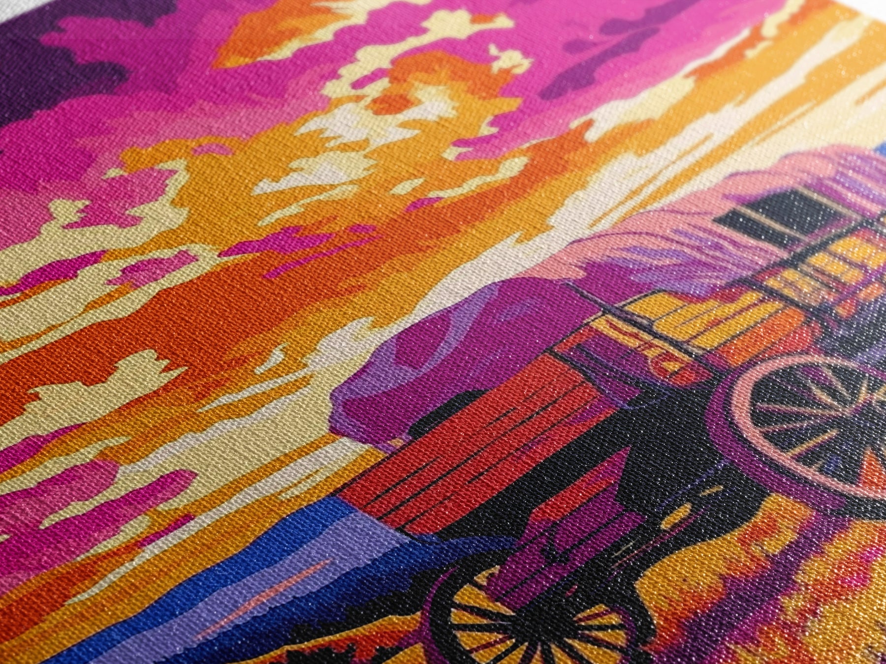 Covered Wagon, Sunset Painting, Western Landscape, Rustic Art, Canvas Print, Southwest Wall Art, Farmhouse Art, Living Room Art