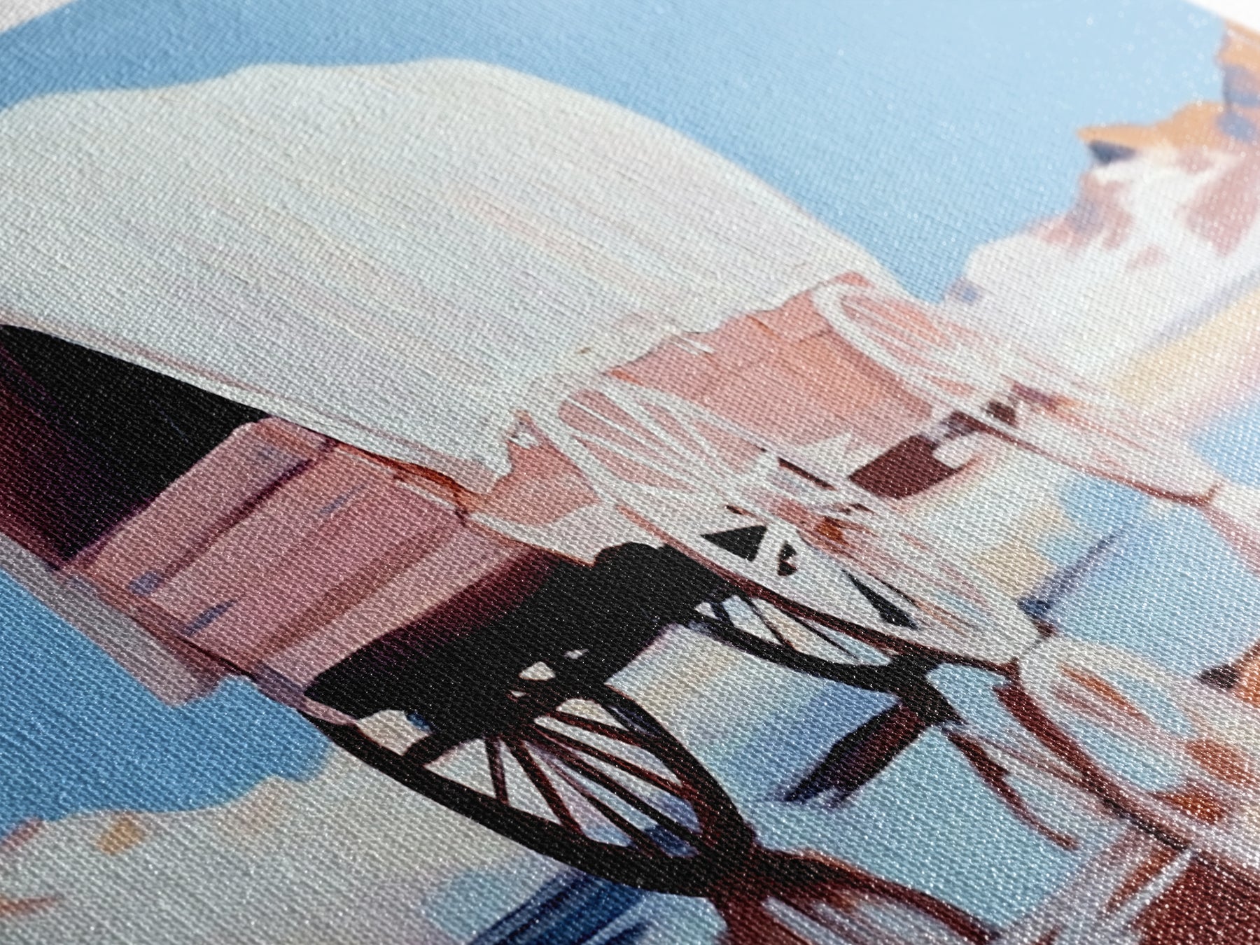Most of our canvases are made in the USA, with the exception of canvases ordered with the light oak unstained frames, and any large canvases (24x48, 30x60, 16x48 and 20x60) ordered WITH a frame. These are temporarily made in and shipped from Europe, while we try to find a more consistent supplier in the USA.